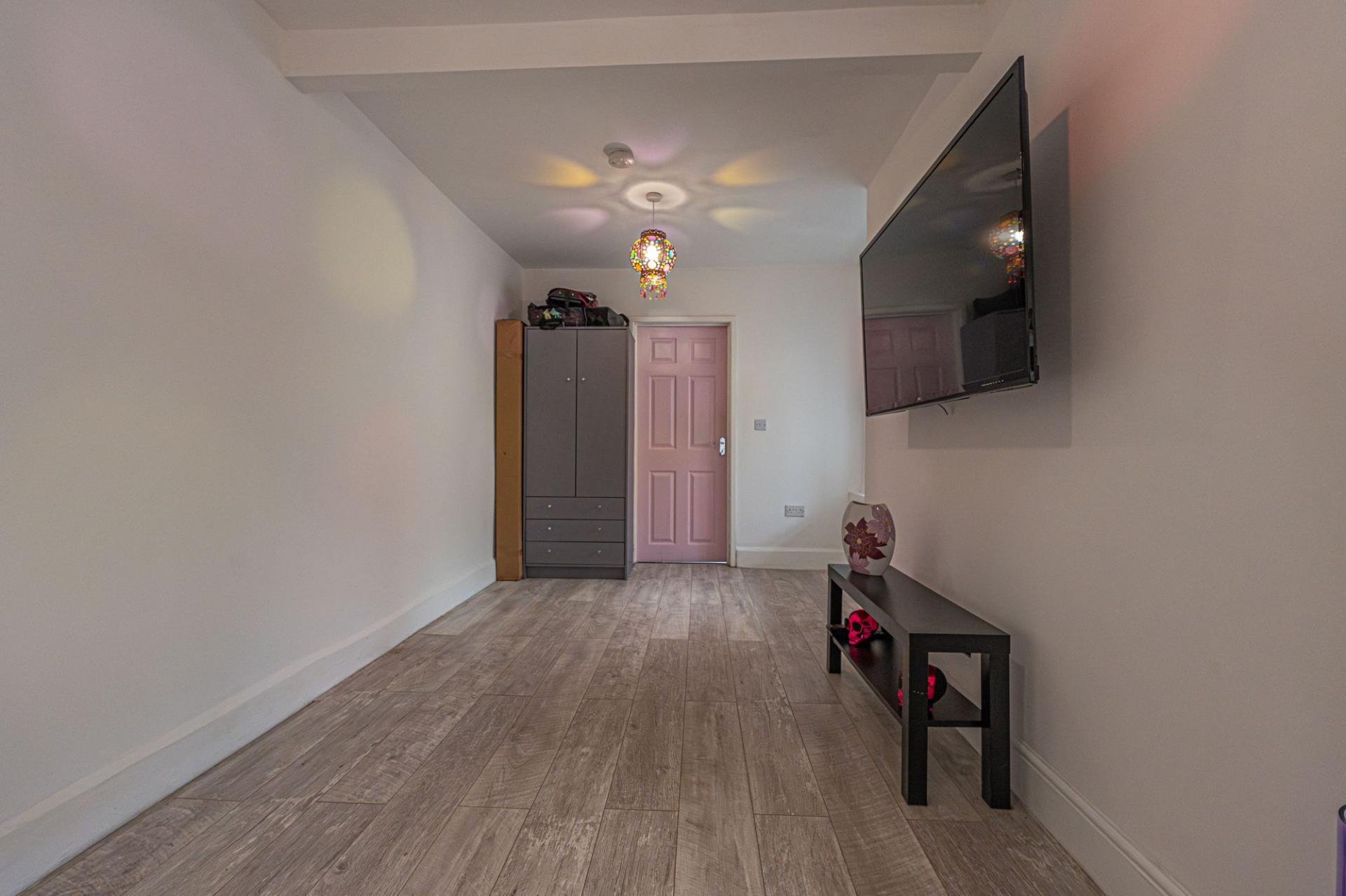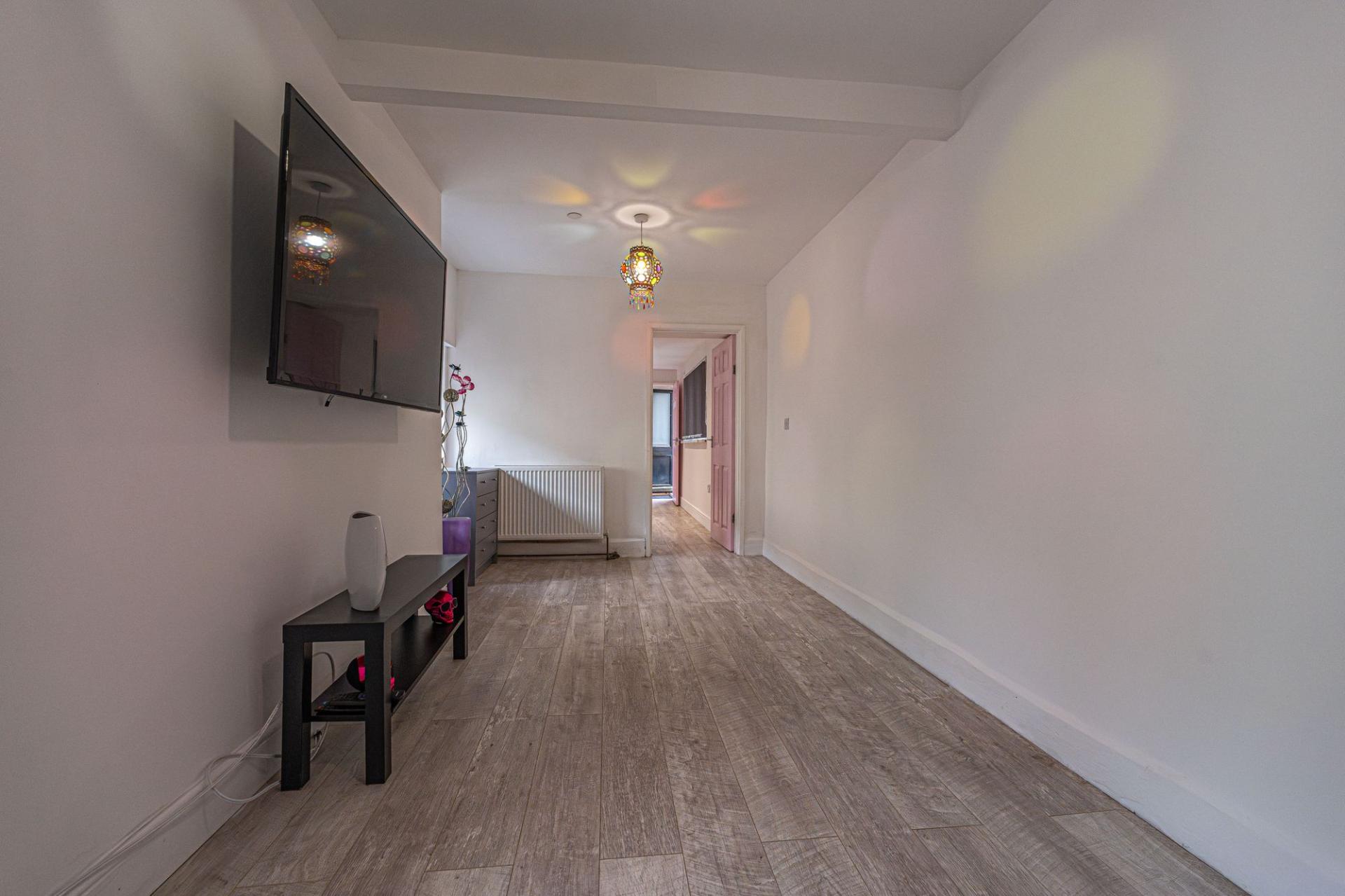 This ground floor flat features a spacious reception room that hosts the practical kitchen, while next door features the proportioned bedroom, with a great, flexible layout that can allow for a variety of furniture layouts of both the lounge and dining area. The main kitchen features multi-aspect windows to light up the room, and space for multiple appliances to join the fitted hob and oven. At the rear of the property we can find the hallway which could be ideal for a utility space, while the bathroom sits adjacent with a bath suite and shower.