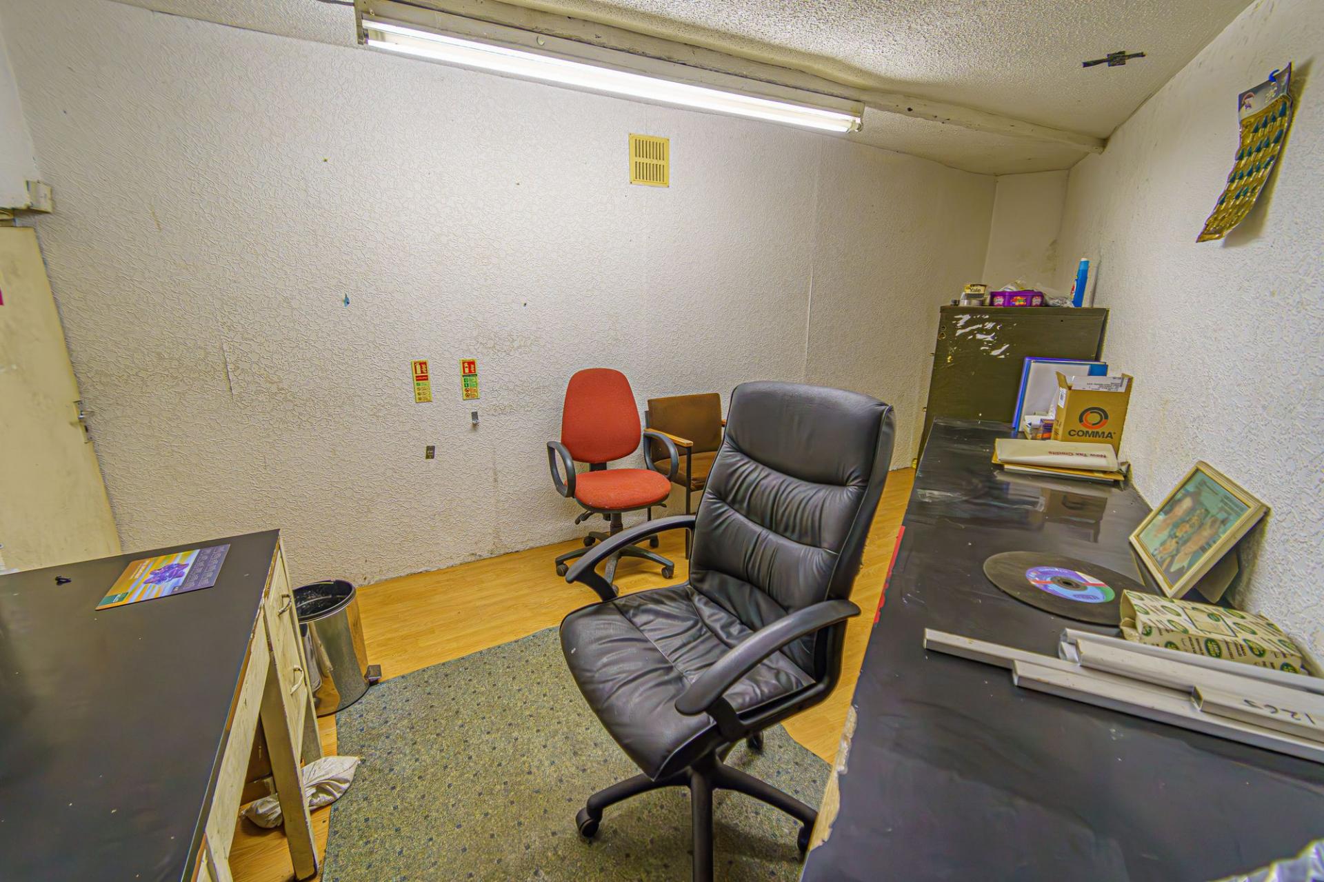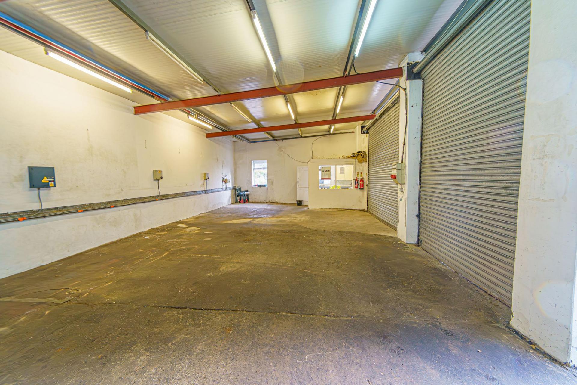 This property consists of three large units that offer an abundance of space for various business purposes, with a large yard between two and roller shutter doors in every unit. One unit features a fitted cupboard for storage, with a useful office space above, while one of the other units features another office/kitchen/reception space.
