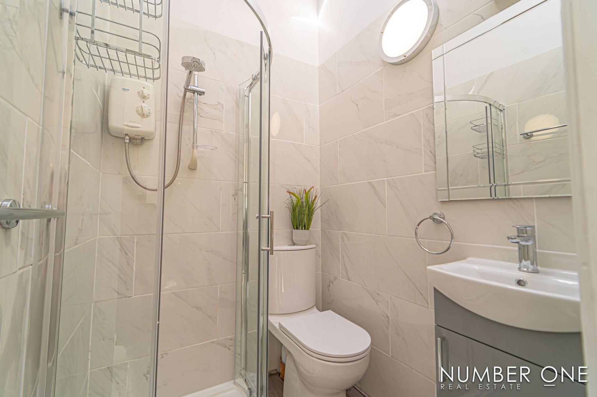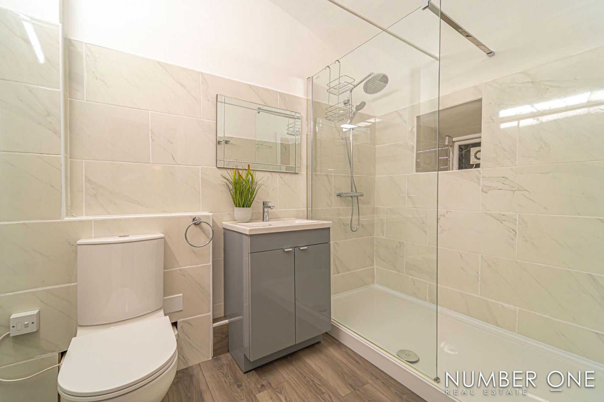 There are two bedrooms at this property, both of which are generously sized double rooms that both benefit from private ensuite bathrooms. The first bedroom can be found to the front of the house, with access from the kitchen, enjoying multi-aspect windows on three walls and an electric shower cubicle. The second bedroom is accessed from the kitchen / entryway via a downwards staircase, also to a great size and enjoying a walk in shower with a rainfall mixer feature. There is also a guest toilet fitted between the kitchen and living room, that also houses the boiler.