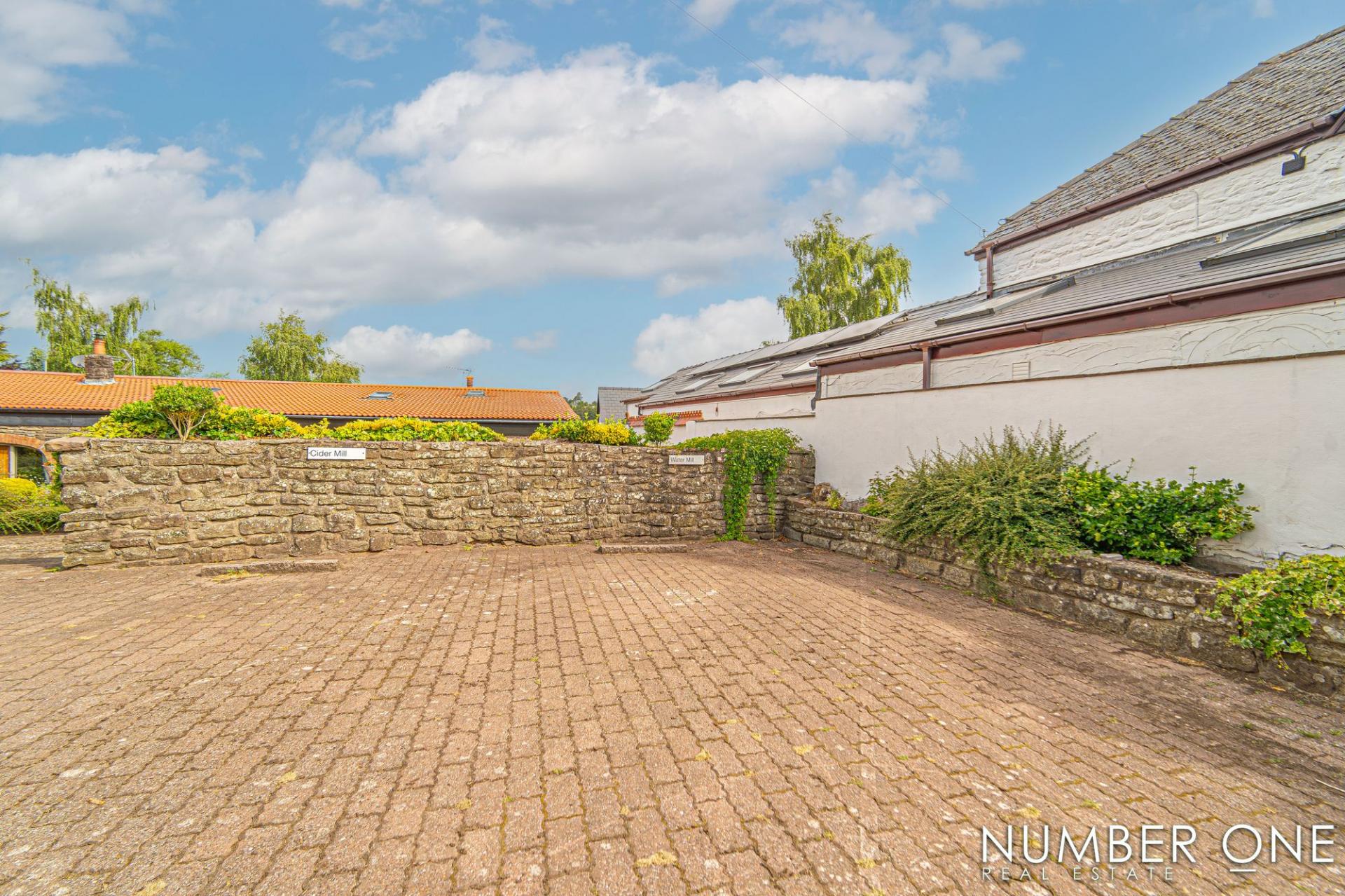 To the front of the house there is a large communal area, as well as private parking for the property.