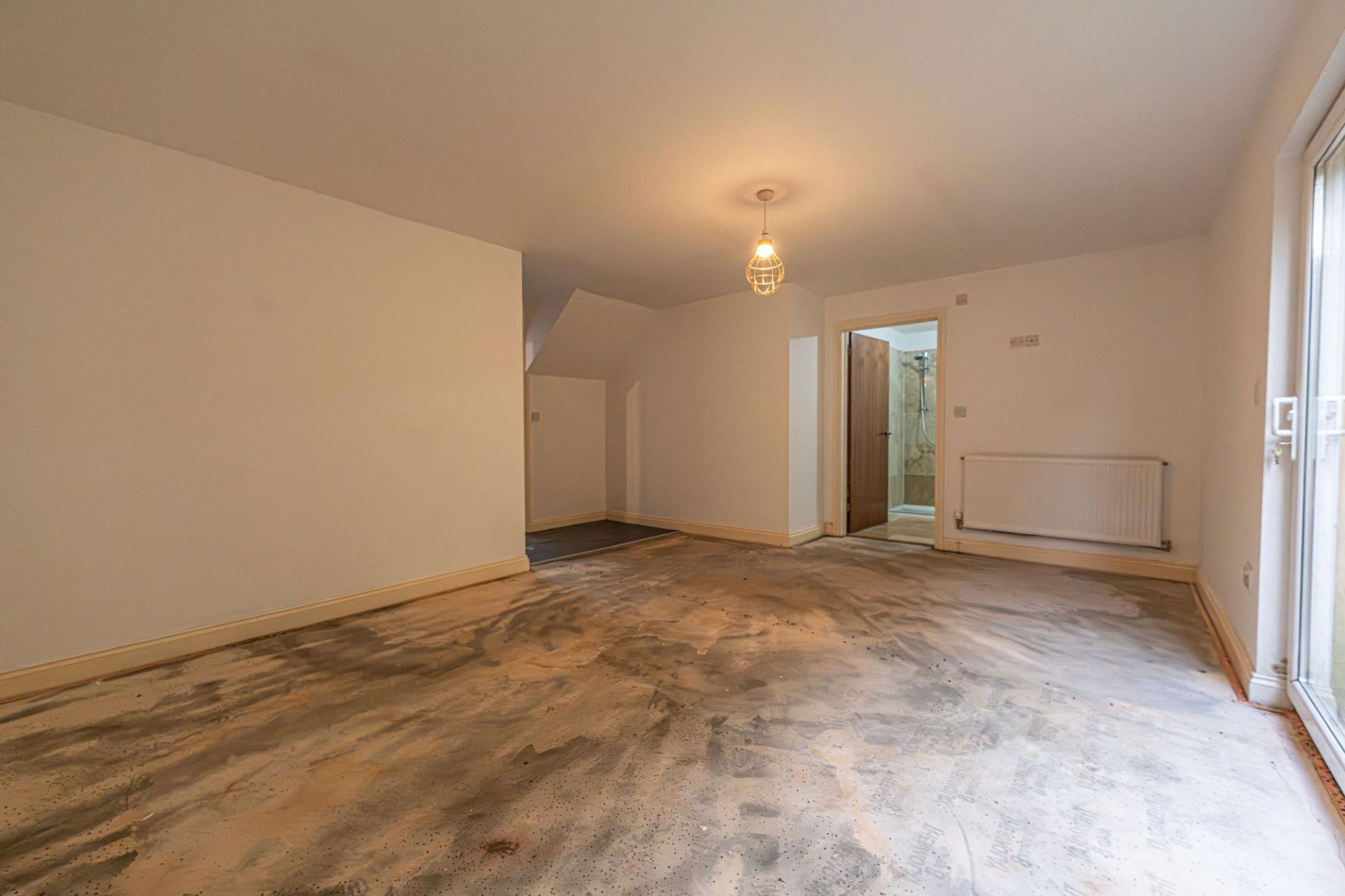 The five bedrooms are split across all three floors of the property, with the first on the middle floor adjacent to the family bathroom. Ascending to the top floor we can find another two bedrooms which are both double in size, with one having access to an en-suite shower room. The final two bedrooms are on the ground floor, including the sizeable primary bedroom, which features a marvellous en-suite shower room, as well as French doors that open to a secluded patio space. The ground floor also provides interior access to the garage, which is great for sheltered parking and storage options.