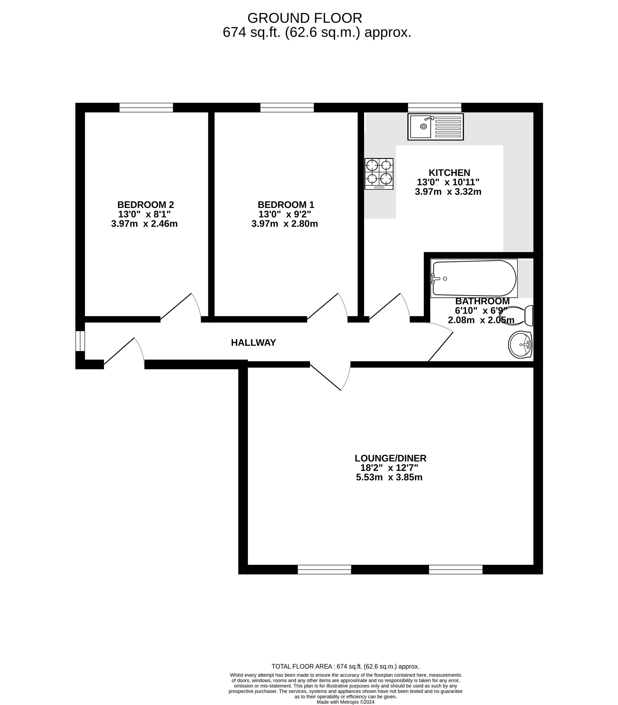 Bedroom 2: 2.4m x 2.4m x 3.9m
