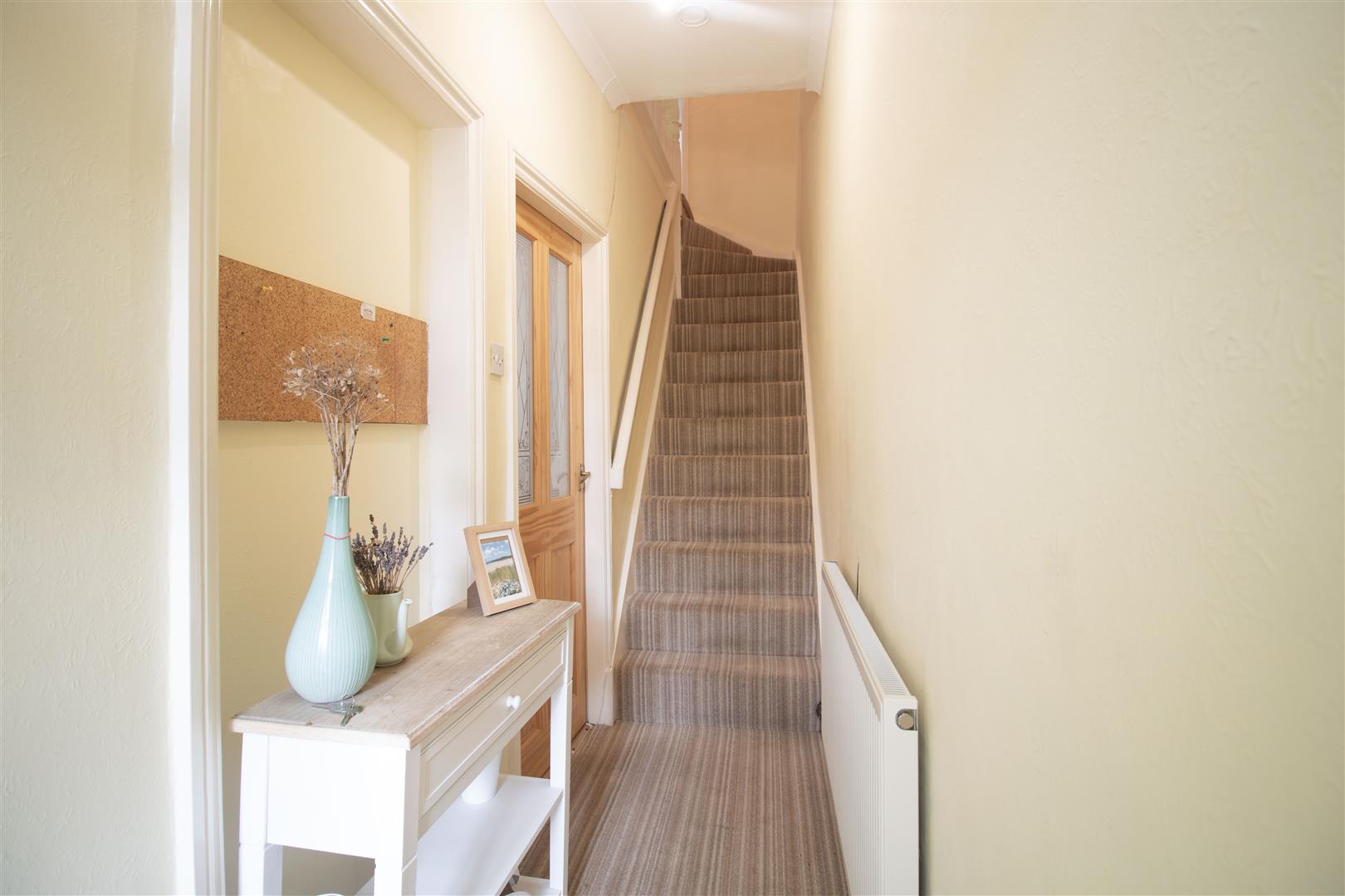 Entrance Hall - Wallpapered walls, plastered ceiling, carpet to floor and stairs, radiator.