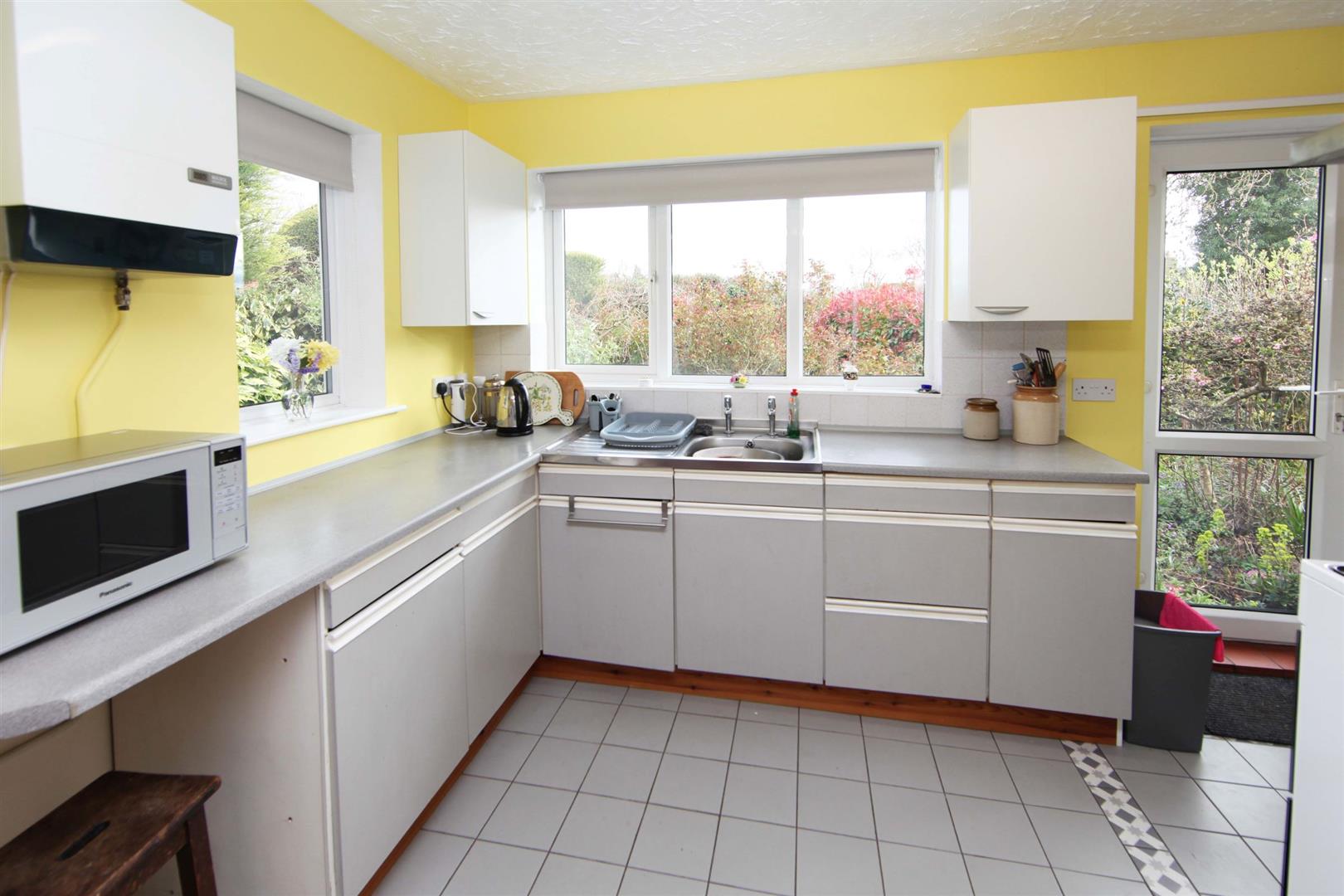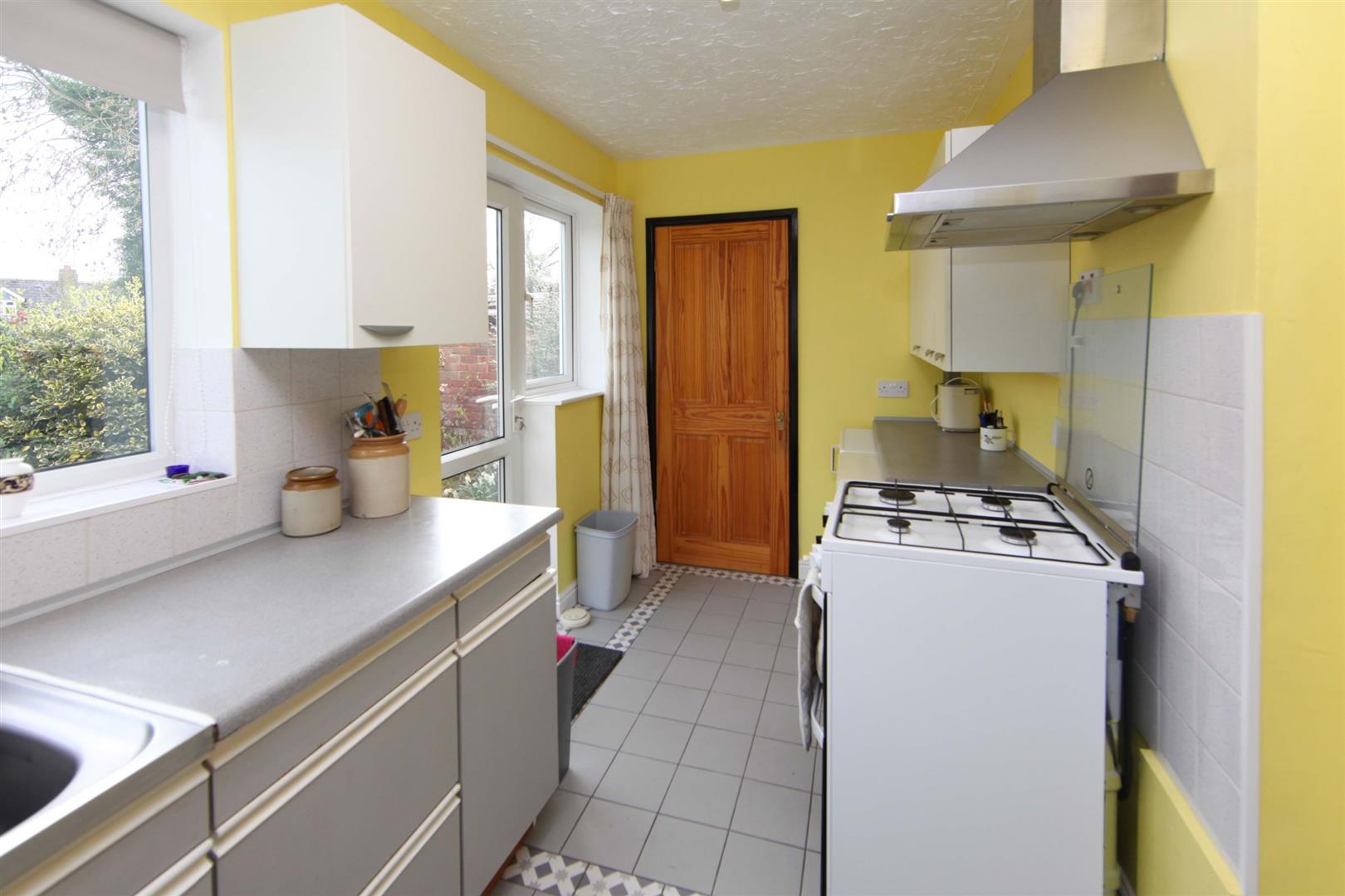 Kitchen - 2.12 x 4.40 (6'11" x 14'5") - having range of base and wall mounted cupboards with the former finished with roll edge worktop. Stainless steel single basin sink unit. Recess for gas cooker and undercounter fridge and freezer. Stainless steel extractor over cooker space. uPVC framed double glazed windows to side and rear. Also external door to rear garden. Ceramic tiled floor. Door to