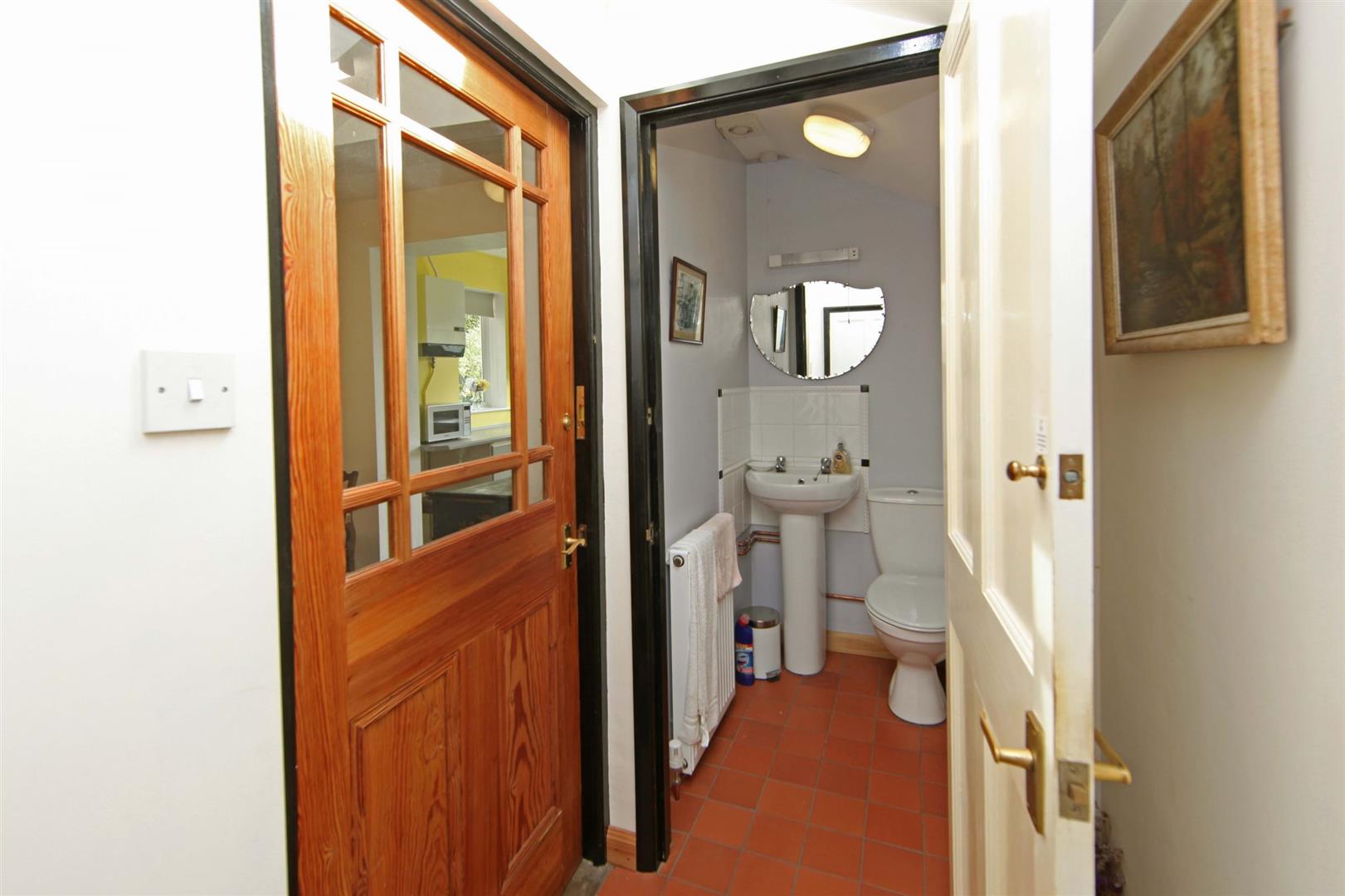 From the Breakfast room, side door to inner lobby with quarry tiled floor and Velux style window. Off is a cloaks/W.C. with low level flush W.C., wash hand basin and radiator. Separate useful storage cupboard and side access to garage.