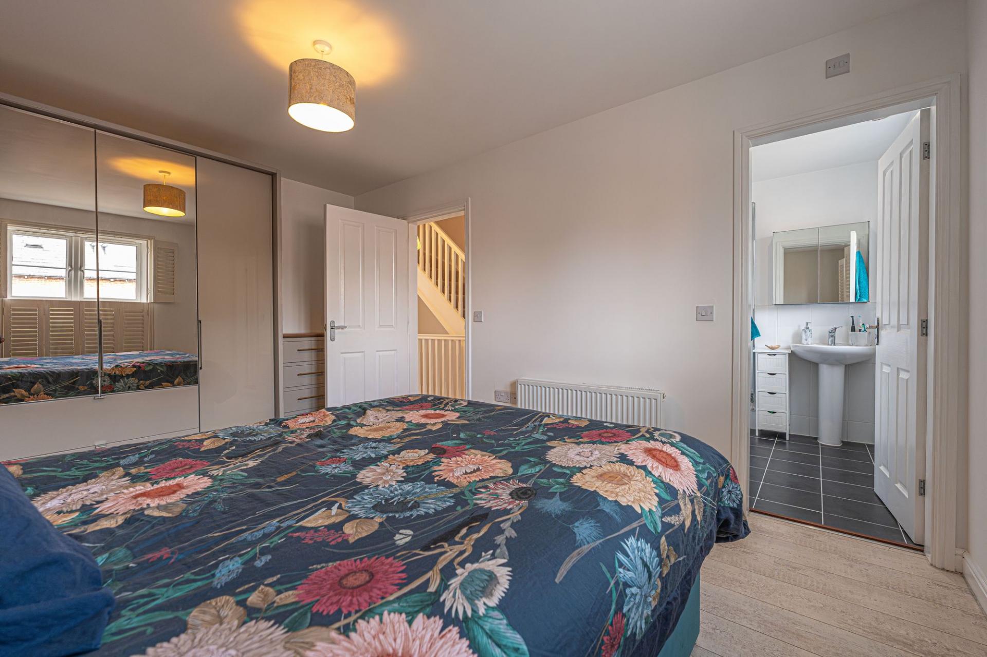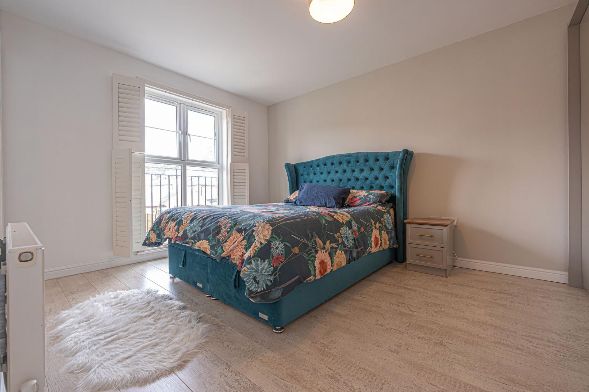 To the first floor we can find the main living room, with multiple windows to brighten up the room, including a Juliet balcony overlooking the rear garden. This reception room offers a great space that can suit various furniture layouts, and is ideally suited for welcoming visitors, and unwinding at the end of a long day. The first floor is also home to the first bedroom towards at the front of the house, which is a generously sized double room, which also enjoys a Juliet balcony, a large fitted wardrobe, and a private en-suite shower room.