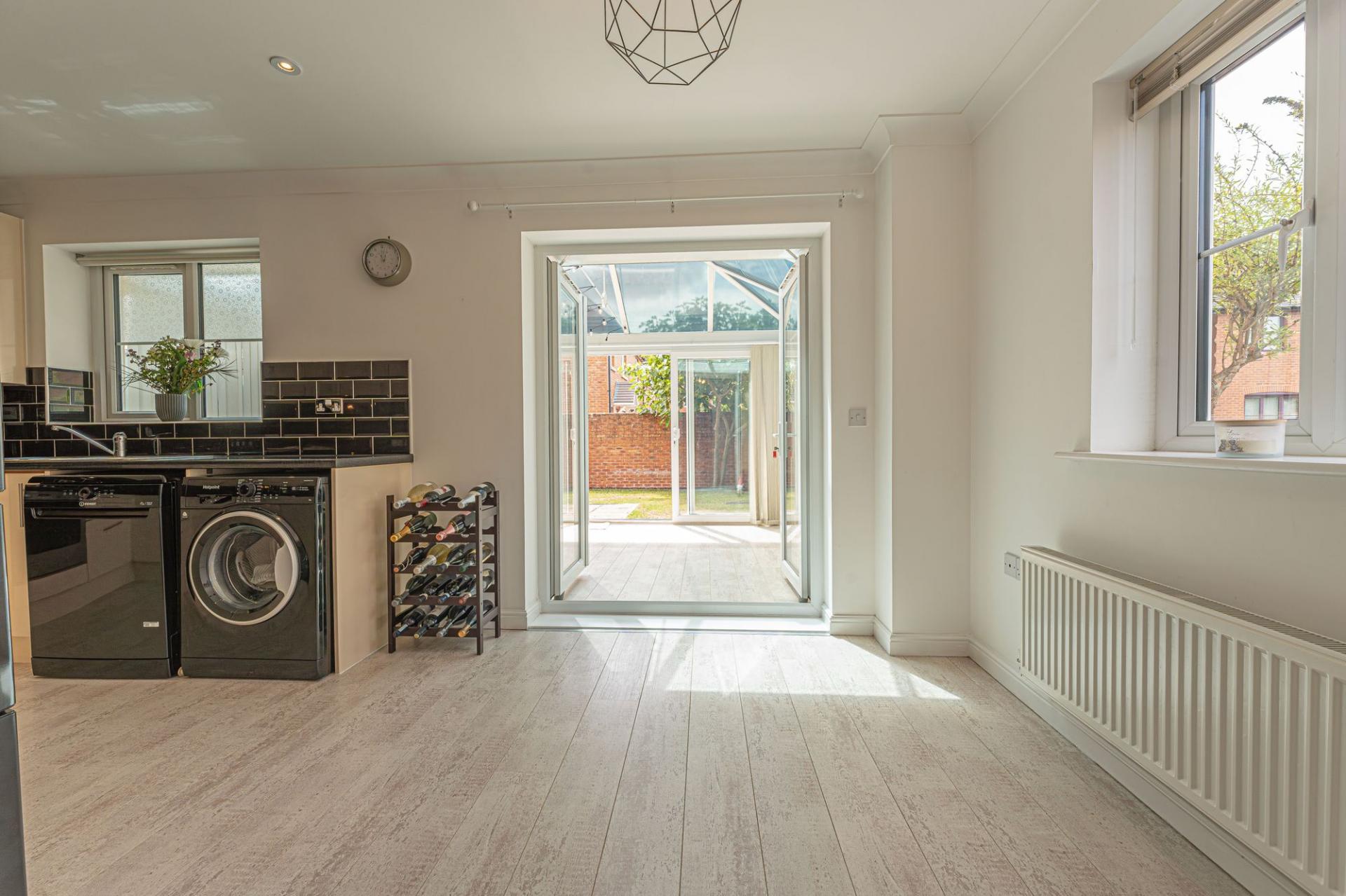 We enter on the ground floor, where from the entrance hallway we are led through to the practical kitchen at the rear, which space for numerous appliances. The room is also large enough to accommodate a dining area or breakfast nook, while double doors connect us to the rear facing conservatory, which is spacious in size and flooded by natural light, offering a great space to extend the dining area, or for a wonderful lounge area, great for welcoming guests. On the ground floor we can also find a W.C and under stairs storage from the hallway, as well as interior access to the fabulous garage, which is large in size and equipped with lights, power and fitted shelving. The property also features fitted blinds/shutters on all windows and a newly installed boiler.