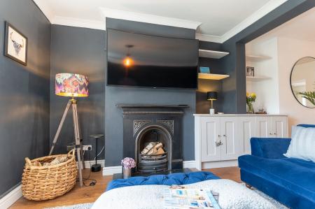 On the ground floor, you are welcomed into a bright hallway which leads into the main living area. This is a beautifully presented open plan space, featuring a charming fireplace and ample room for a range of seating and dining furniture. The open plan design flows seamlessly through to the kitchen, which is fitted with a generous range of units and worktop space, along with room for a breakfast table. From here, there is access out to the rear garden, creating a practical and sociable layout.