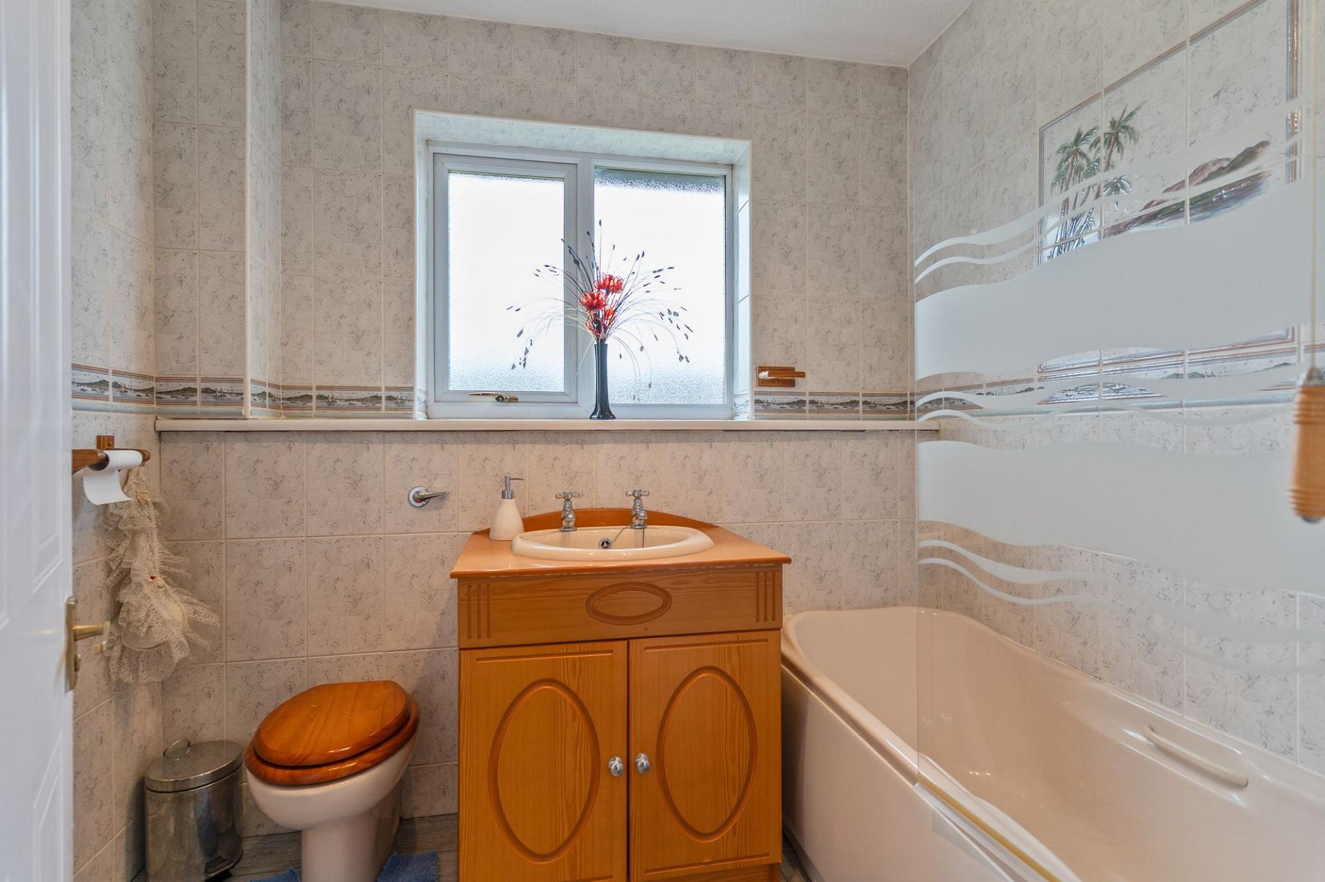On the first floor, the accommodation comprises three well-proportioned bedrooms – two spacious doubles and a comfortable single – alongside the family bathroom, which offers scope for updating and redesign.