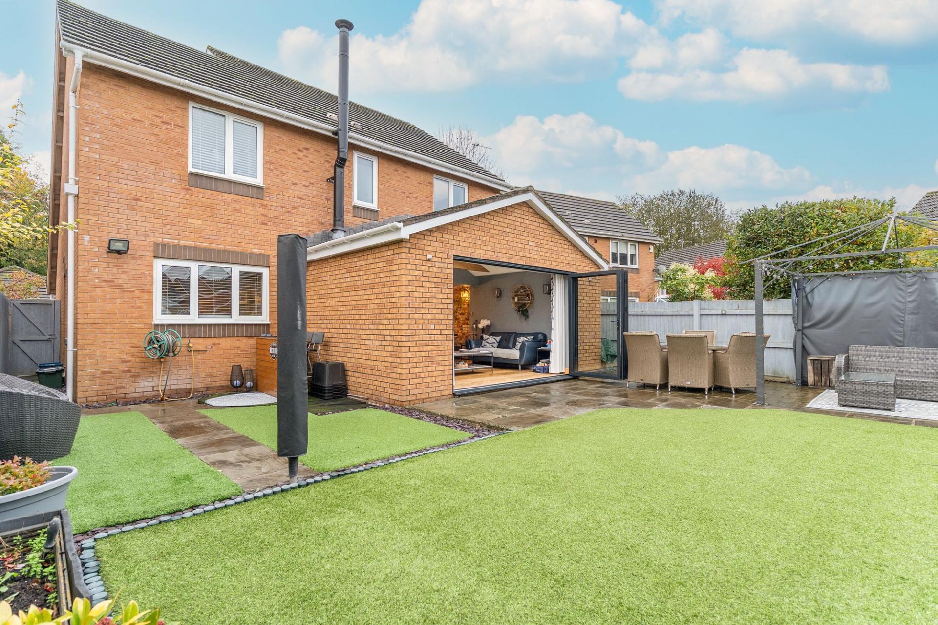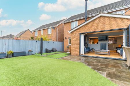 Externally, the property enjoys well-maintained outdoor spaces to both the front and rear. To the front, there is ample off-road parking, ensuring convenience for multiple vehicles. To the rear, the enclosed garden provides a peaceful and private space ideal for family life and entertaining. The garden features a combination of patio and lawn areas, offering plenty of room for outdoor seating, dining, or play, with the bi-fold doors from the kitchen enhancing the flow between indoor and outdoor living.