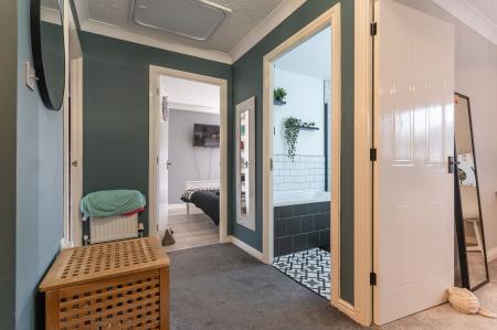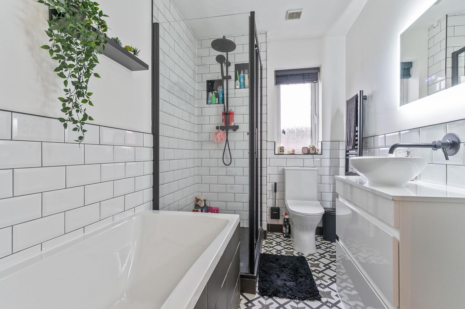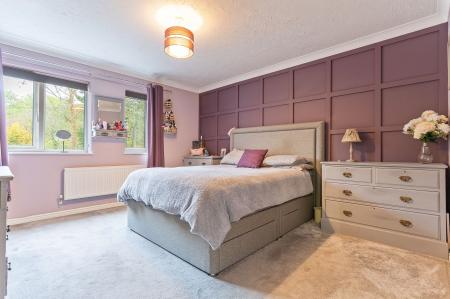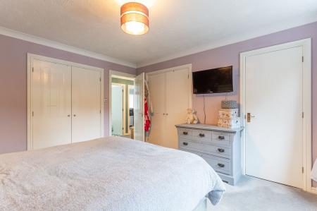 On the first floor, the property offers four double bedrooms, each beautifully presented and featuring built-in wardrobes. The primary bedroom benefits from its own en-suite shower room, adding a touch of luxury and privacy. The remaining bedrooms are all generously sized and share access to the modern family bathroom, which is fitted with contemporary fixtures and finished to a high standard.