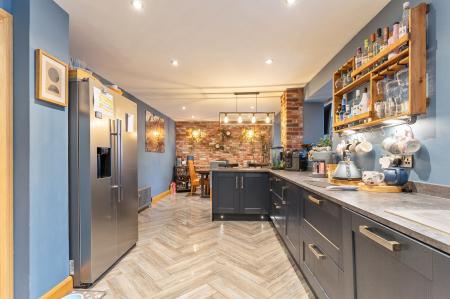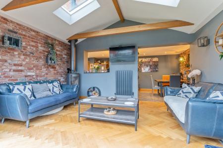 To the rear of the property lies the open-plan kitchen and dining area, creating an open area to entertain of just enjoy family time.. The modern kitchen features a sleek design with a breakfast bar, high-quality finishes, and ample storage and worktop space, while bi-fold doors open out onto the rear garden, seamlessly blending indoor and outdoor living. The addition of a utility room provides further practicality, and the open-plan layout offers plenty of room for both seating and dining, making this the true heart of the home.