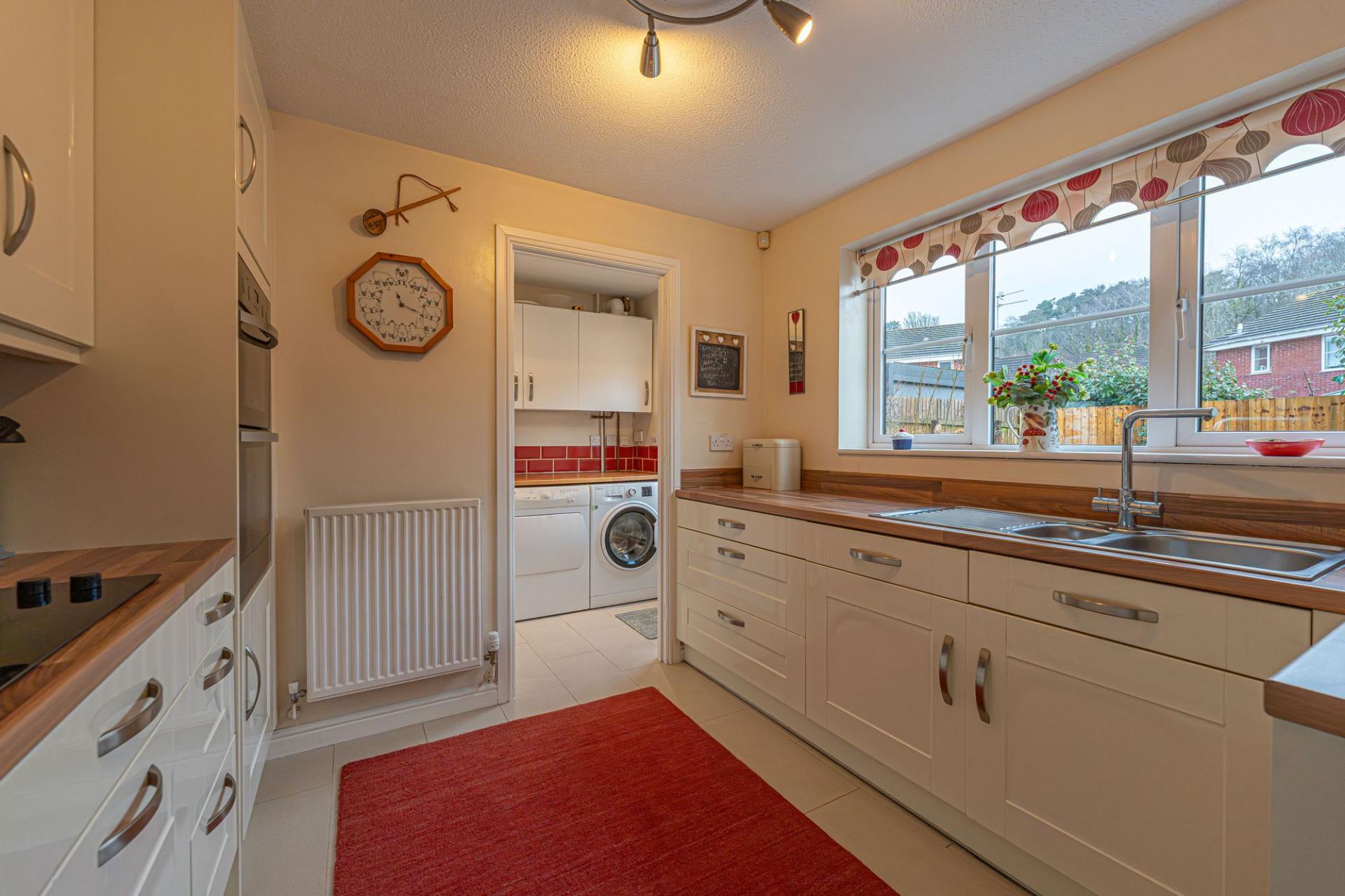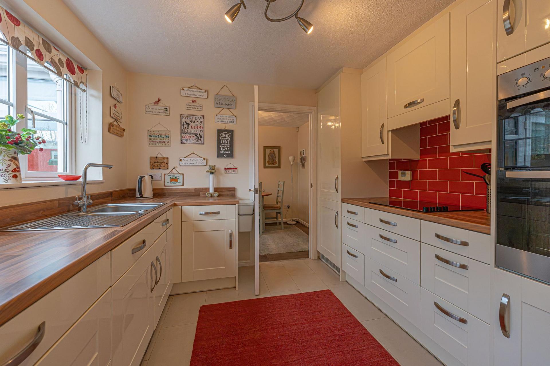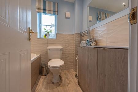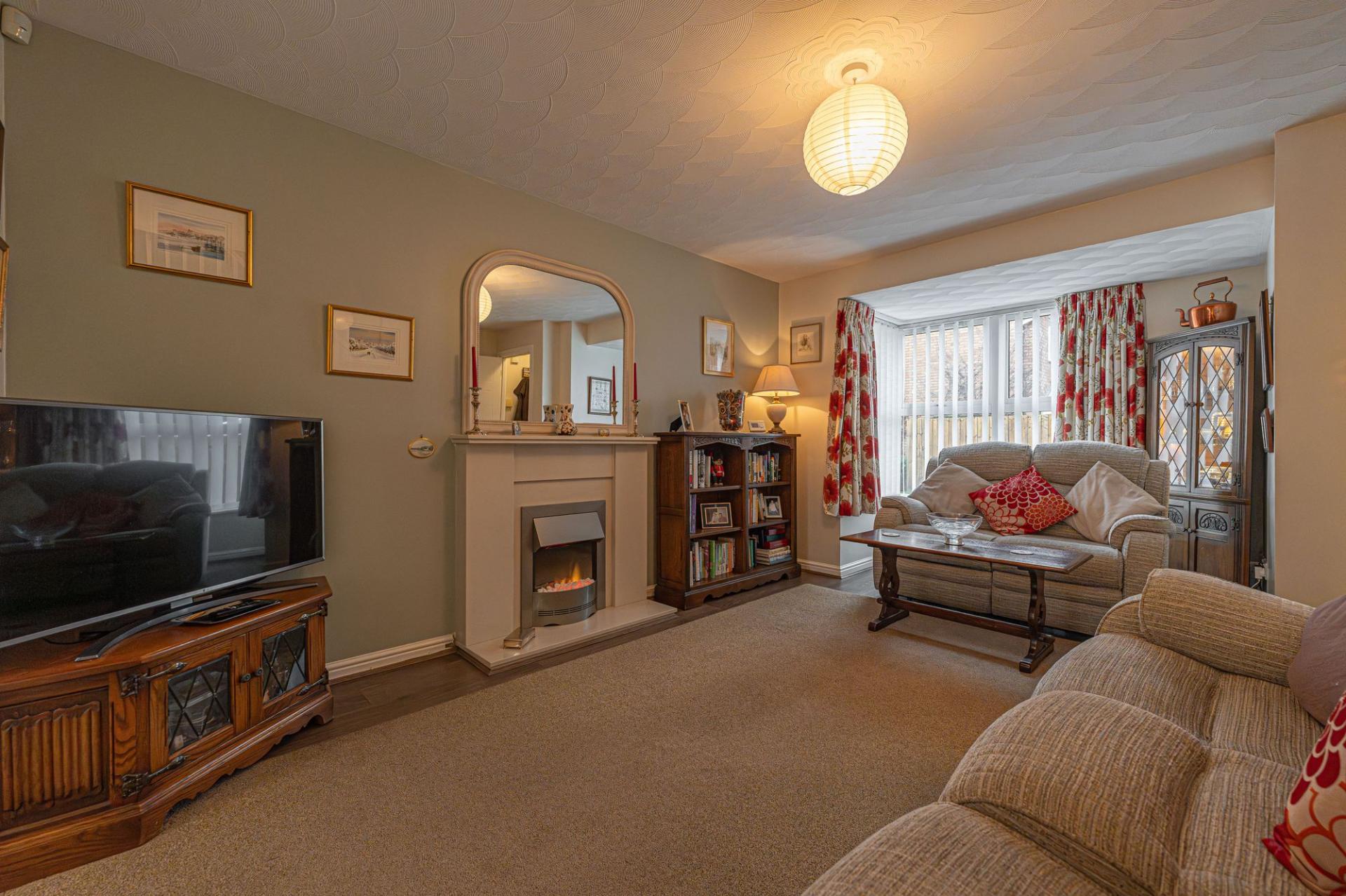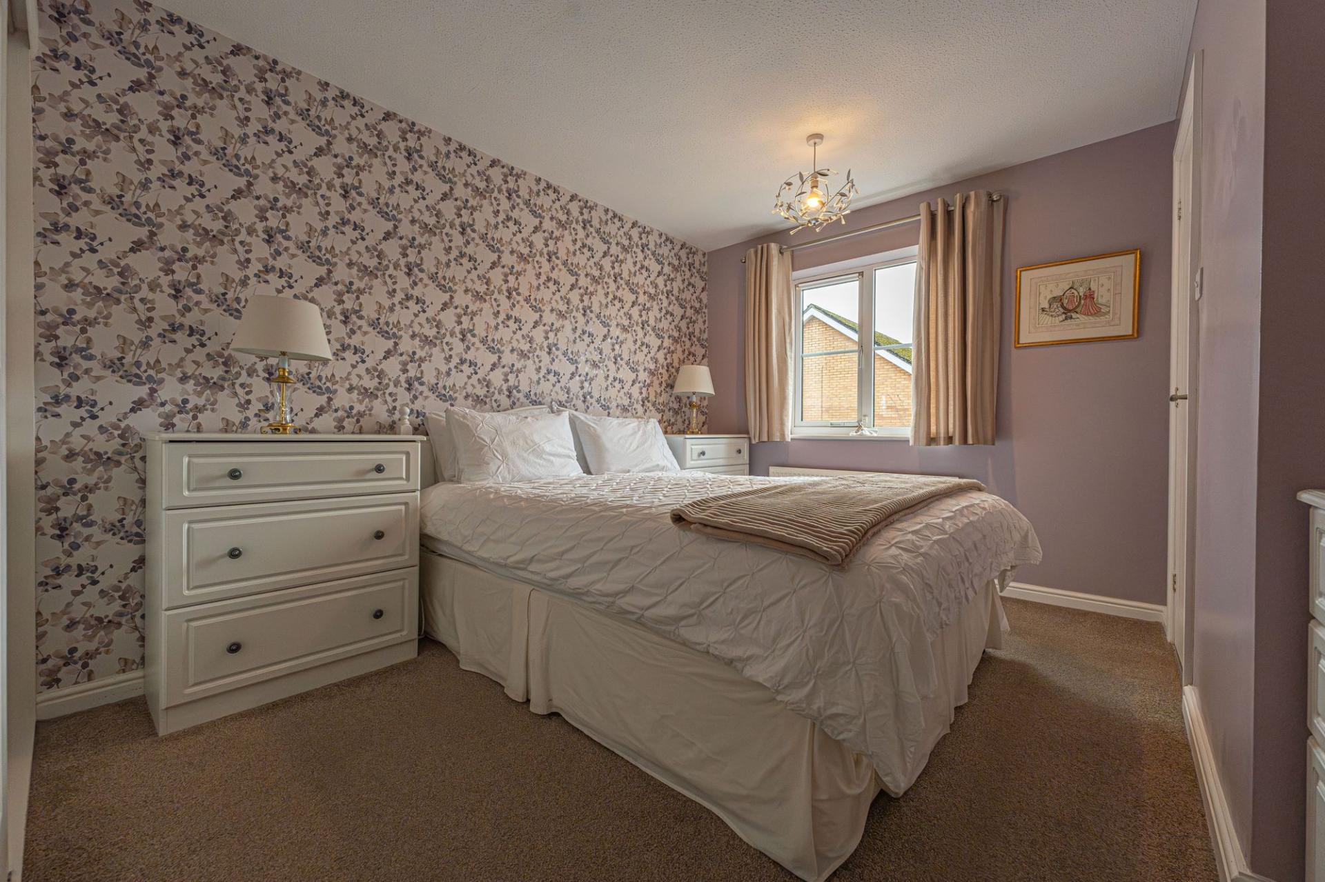 Upon entry to this beautifully presented property, we are welcomed through into the spacious living room, which features bay front windows, and serves as a great space for relaxing and entertaining guests. The living room is also complimented by an array of easy access cupboards and drawers fitted under the staircase, aswell as an electric fireplace to contribute to the warm and welcoming atmosphere. Neighbouring the lounge we can also find an open plan walkway to connect us to both the dining room and the conservatory beyond, providing easy access to both of these reception spaces. The conservatory has the added benefit of underfloor heating, and is flooded by natural light with views into the garden. The modern Wren kitchen can also be found towards the rear of the house, and is complete with ample storage fixtures and numerous integrated appliances, with a helpful utility room and sleek W.C are found next door.