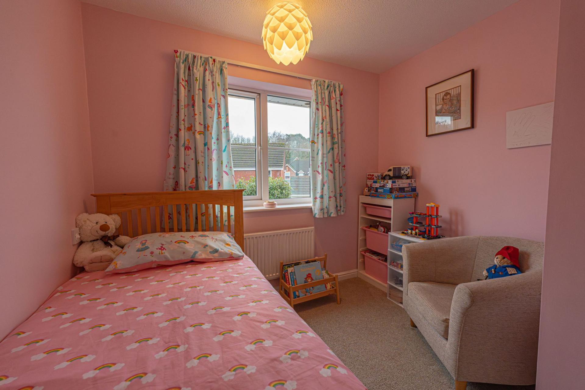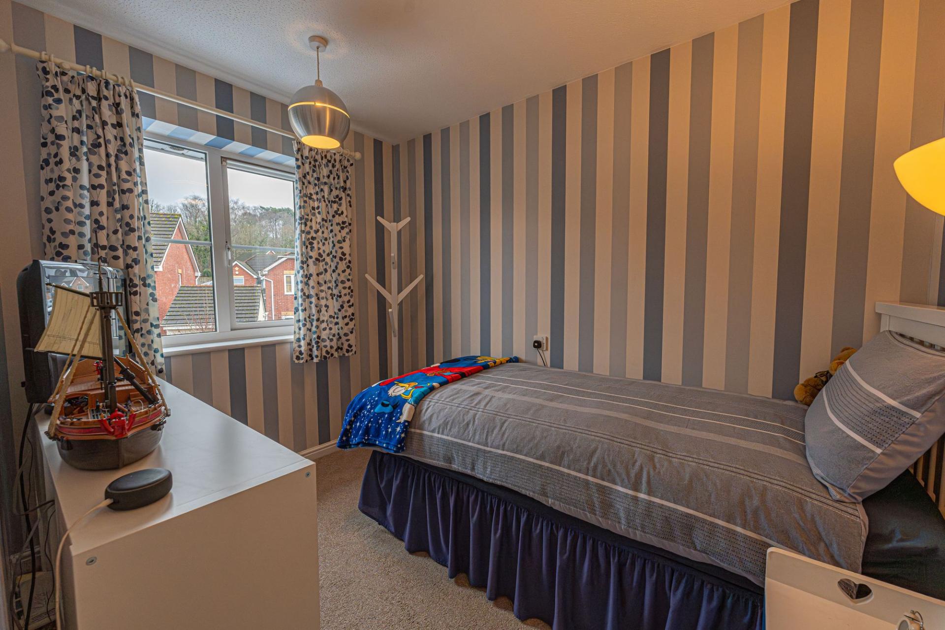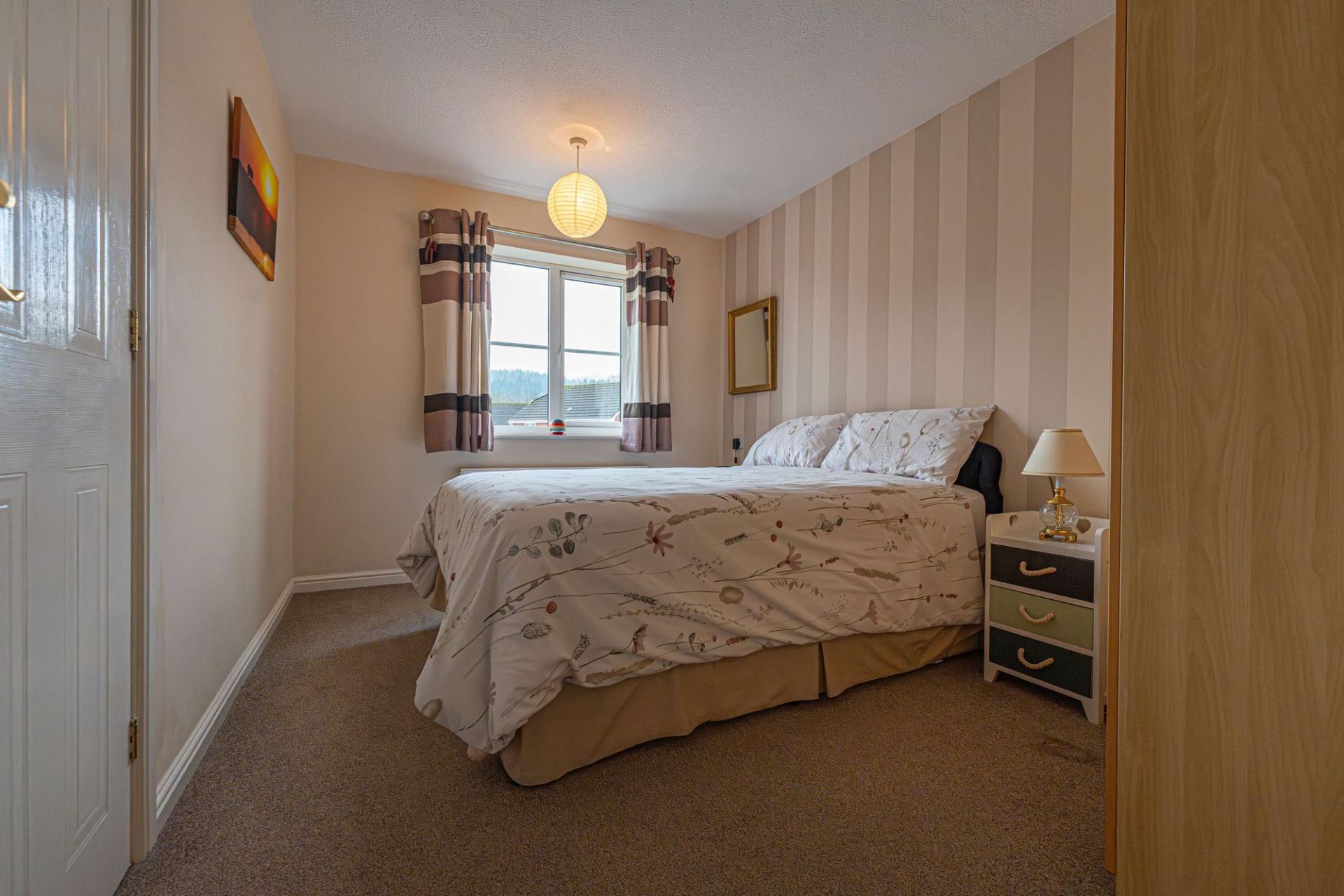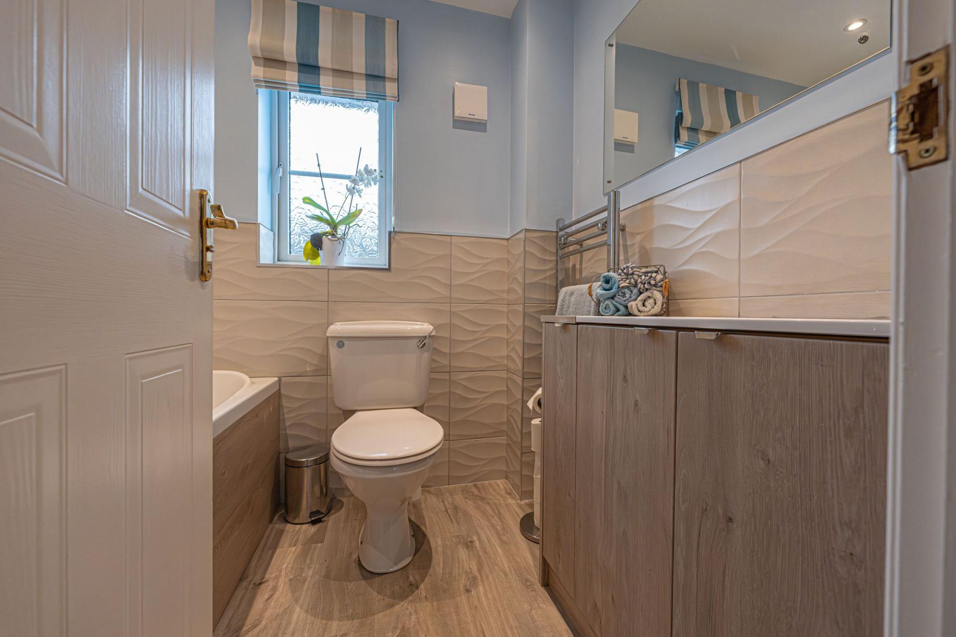 To the first floor we have four bedrooms, two of which are double in size while the remaining two are comfortable single bedrooms, with a versatile design that could be perfect for a home office, dressing room or snug living area. Two of the bedrooms enjoy fitted wardrobes for optimised storage space, and another bedroom containing a heated airing cupboard. The primary bedroom also has the added benefit of an en-suite shower room, while the family bathroom is accessible from the hallway.