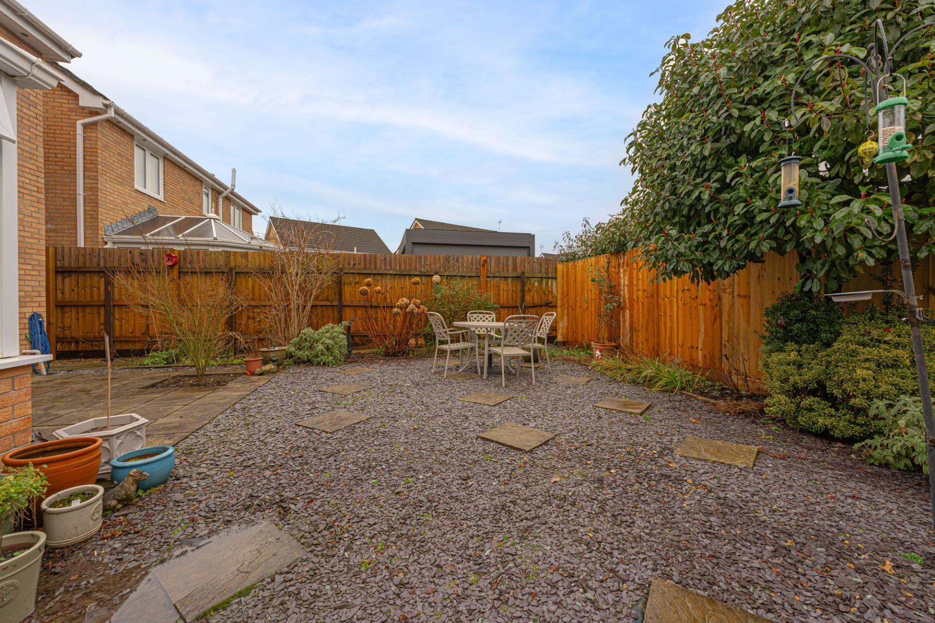 Stepping outside we have the landscaped rear garden, which is fully enclosed by renewed privacy fencing, while ensuring plenty of space for families and guests to enjoy. The garden is complete with a spacious patio and a low-maintenance pebble garden, featuring mature shrubs and plants to enhance this wonderful space, which is perfect for lounging and outdoor dining all year round. The property also boasts off-road parking with a 2-car driveway, in addition to a garage for additional parking, storage and conversion opportunities. Further parking is available beyond the quiet cul-de-sac, which enjoys friendly neighbours.