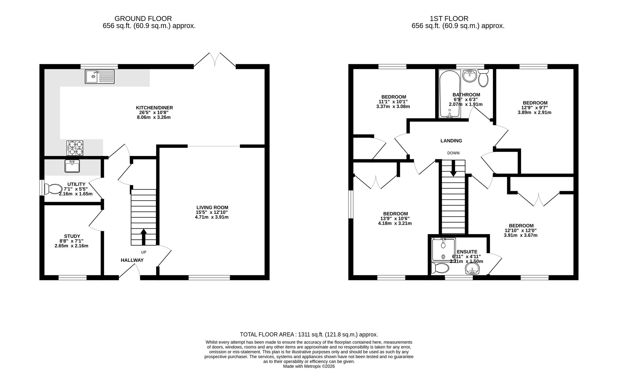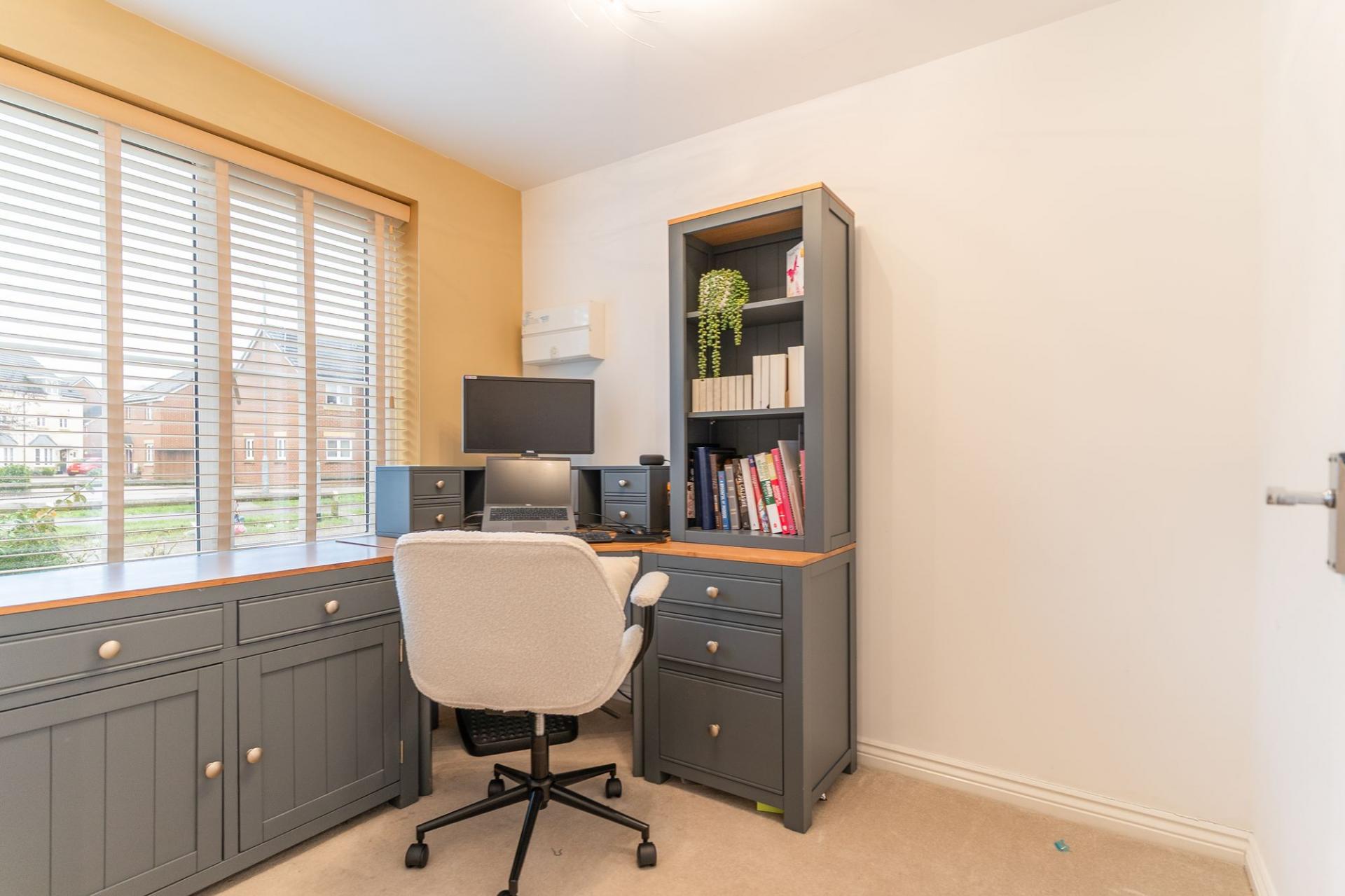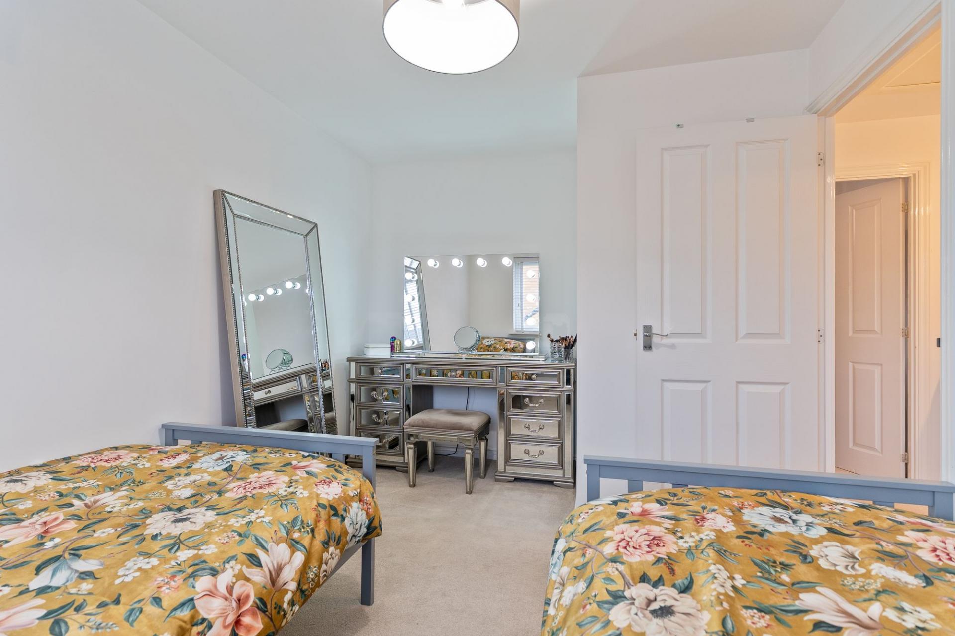 The first floor comprises four well-proportioned double bedrooms and the family bathroom. The primary bedroom benefits from its own en-suite shower room, providing privacy and convenience. The remaining bedrooms offer flexible accommodation suitable for family living, guests or additional workspace.