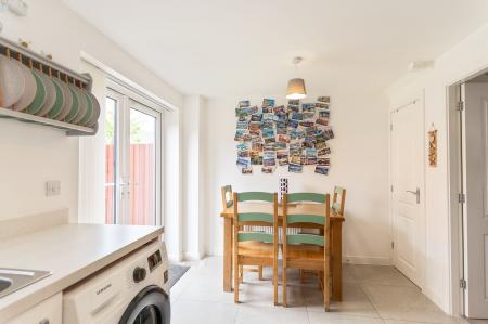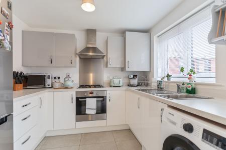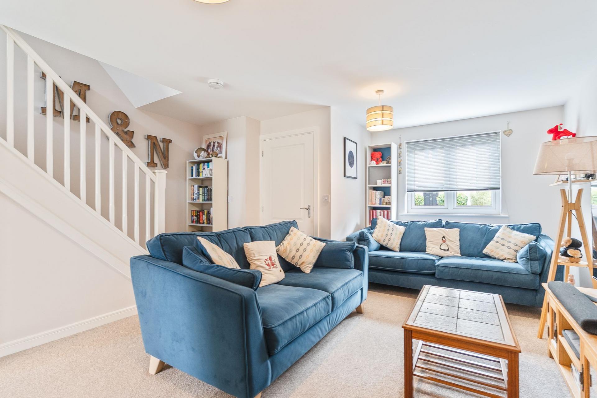 Upon entering, a welcoming porch leads into a light and airy hallway. Immediately to the right is a cloakroom, and straight ahead is the well-presented living room, spacious enough for comfortable seating with stairs rising to the first floor. A doorway from here leads to the modern kitchen/diner at the rear, which offers a bright, contemporary feel, ample worktops, stylish fitted units and plenty of room for a dining table—ideal for family meals and entertaining.