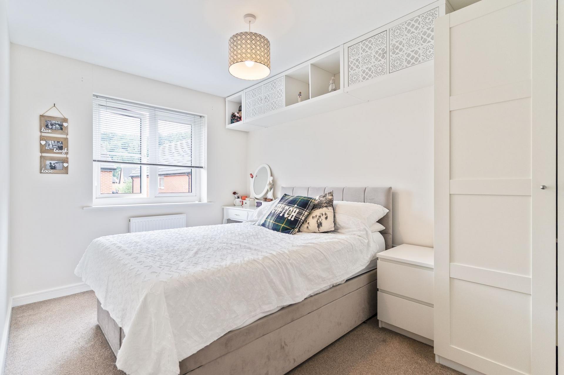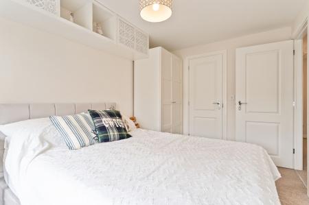 Outside, to the rear, there is a driveway with space for two vehicles, leading directly into the enclosed garden. This generous outdoor area includes a lawn, a patio and a decking section—perfectly suited to al fresco dining, relaxing in the fresh air or letting children play safely.