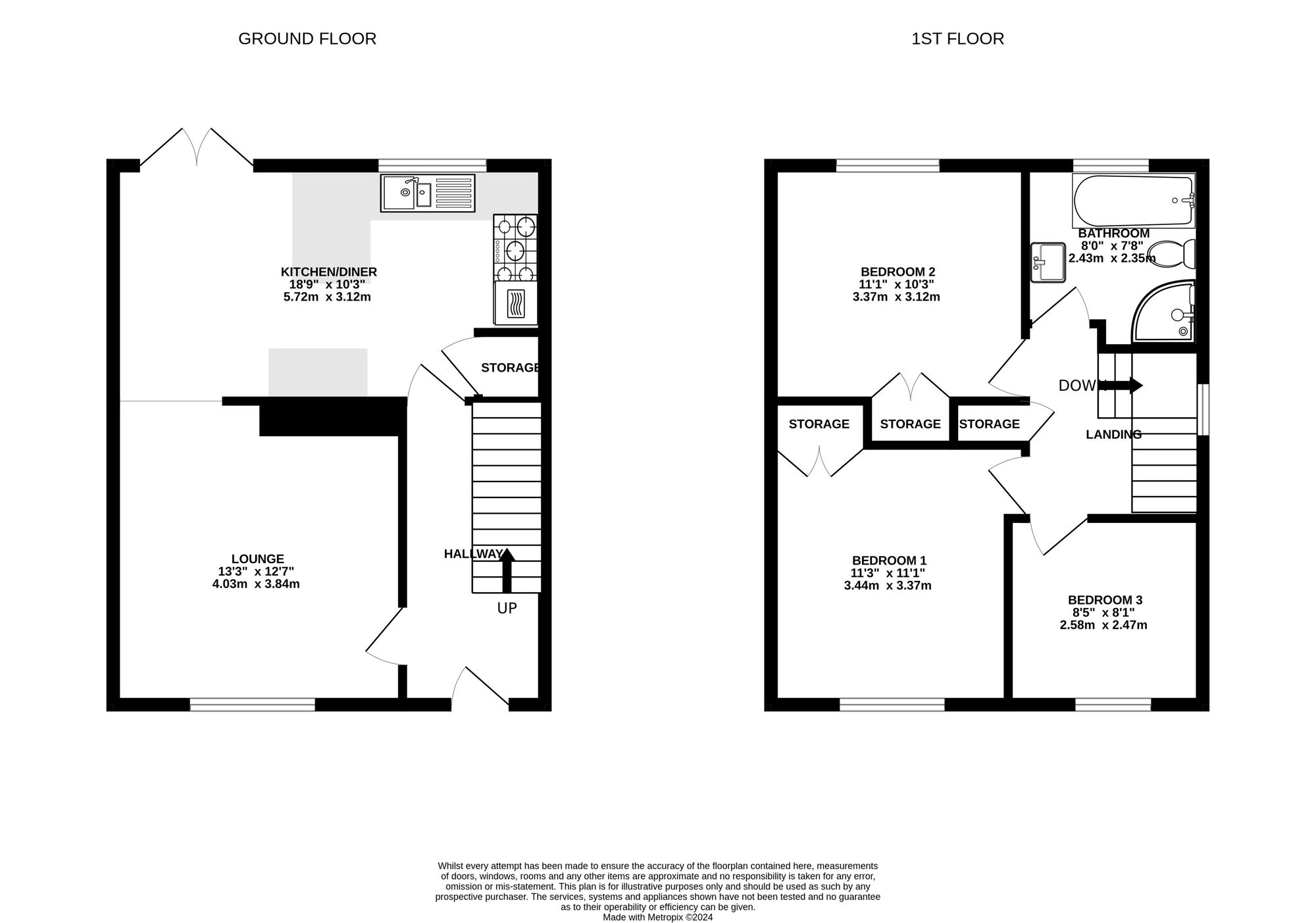 To the first floor there are three bedrooms, two of which are double and the third a comfortable single. Both double bedrooms benefit from fitted storage, ideal for utilising space. The bathroom can be found from the landing with a bath suite and separate corner shower.