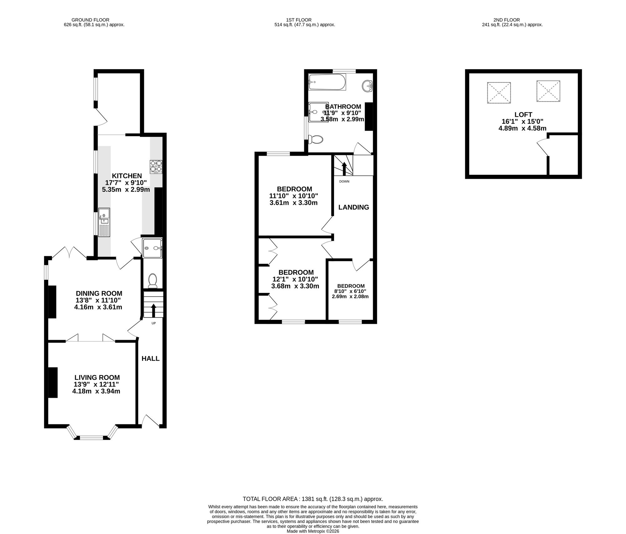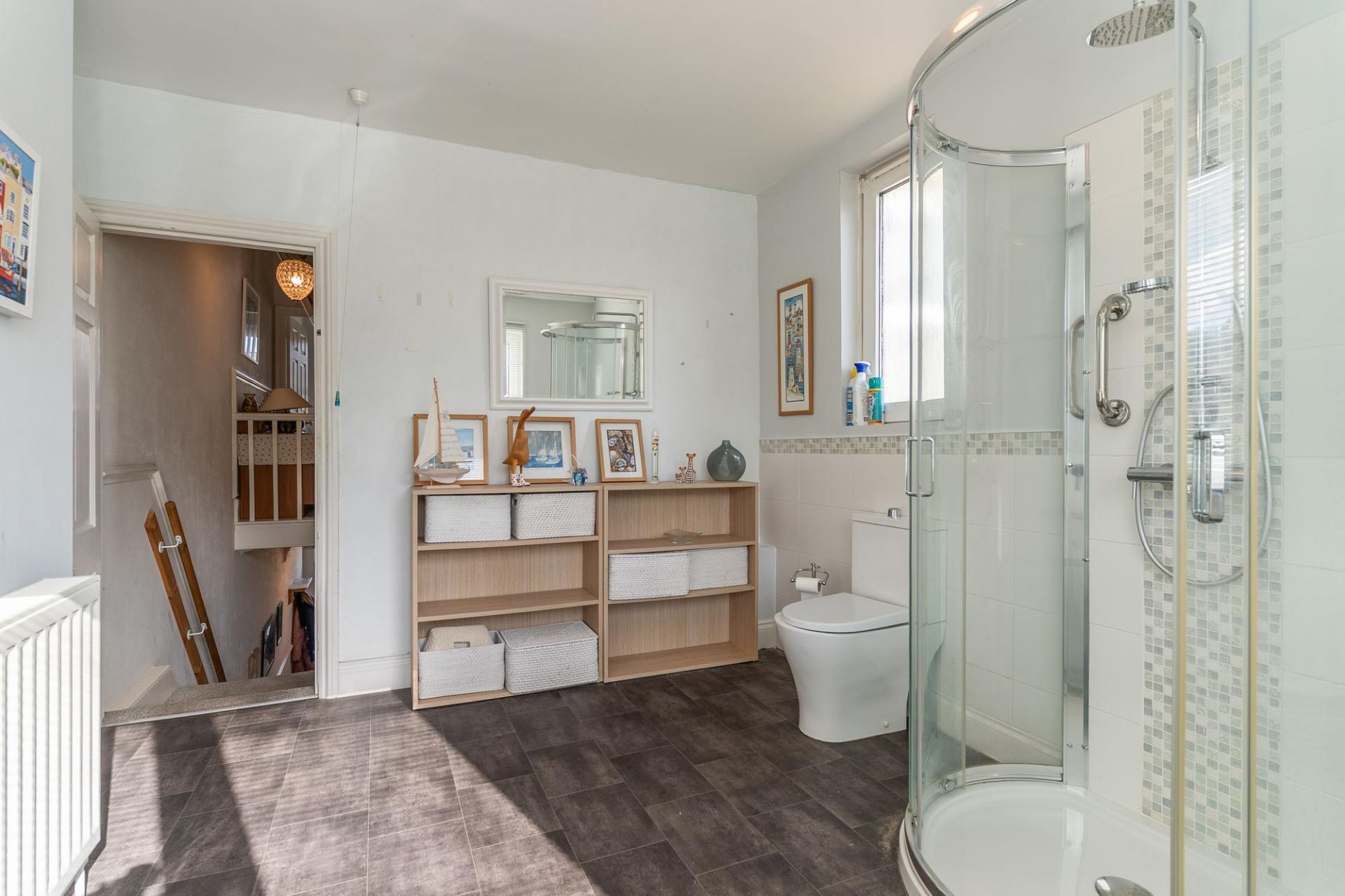On the first floor are three bedrooms and a large family bathroom. There are two well-proportioned double bedrooms and a comfortable single room, providing flexible accommodation suitable for families, guests or home working. The generous family bathroom serves all bedrooms. The loft benefits from flooring and two Velux windows.