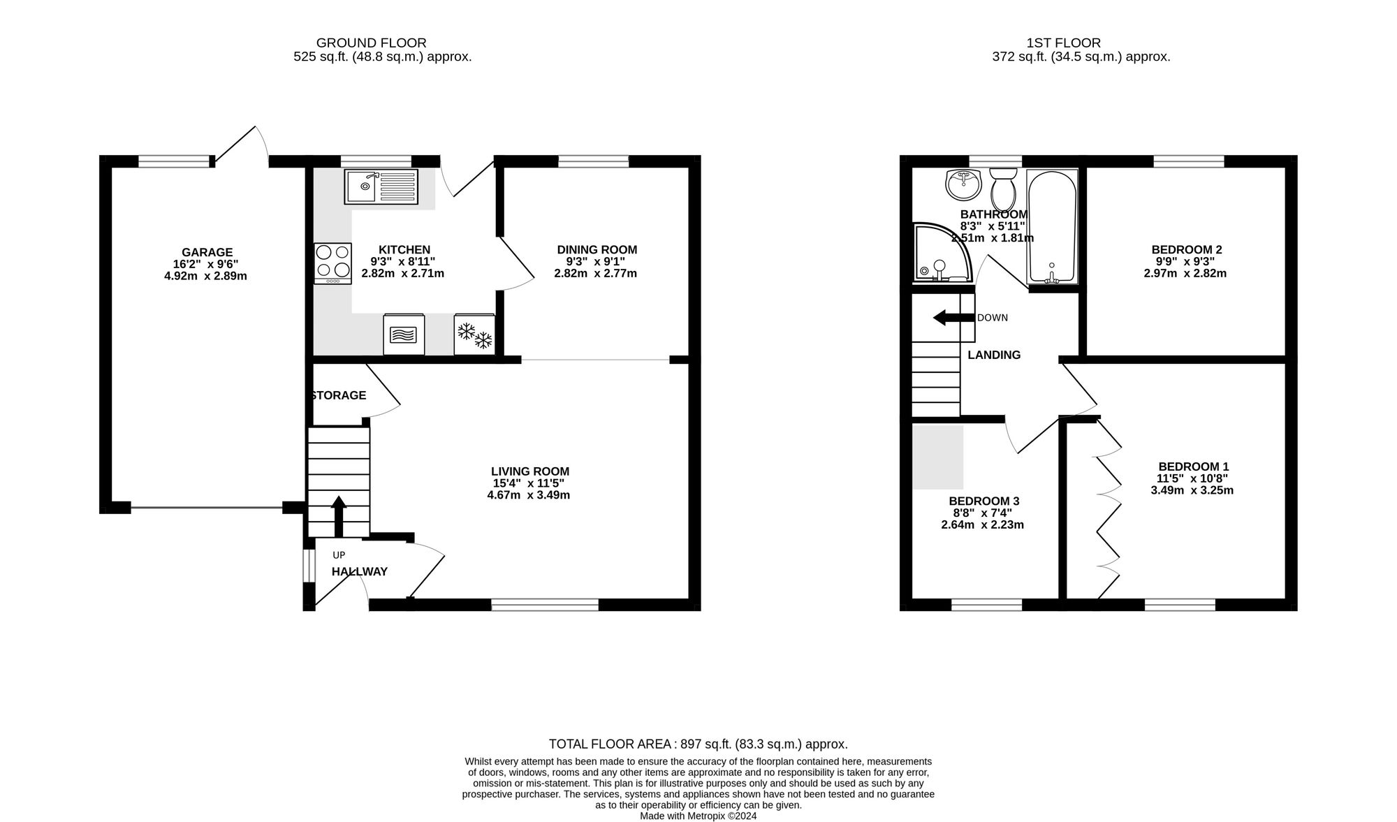 Garage: 2.8m x 4.9m