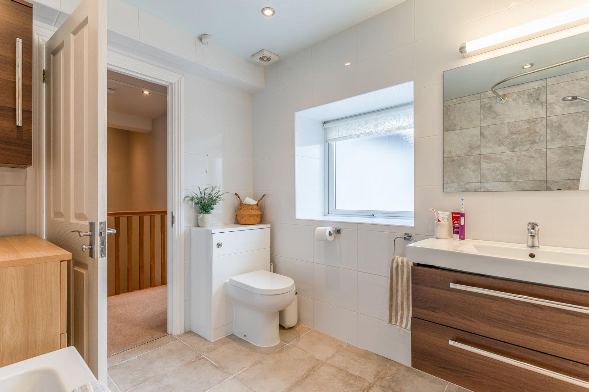 On the first floor are three spacious double bedrooms and the family bathroom. The bathroom is fitted with a contemporary suite and benefits from underfloor heating, adding a touch of luxury. The primary bedroom also enjoys a modern en-suite shower room. In addition, the property features a substantial loft space offering excellent storage and potential for conversion, subject to the necessary planning permissions.