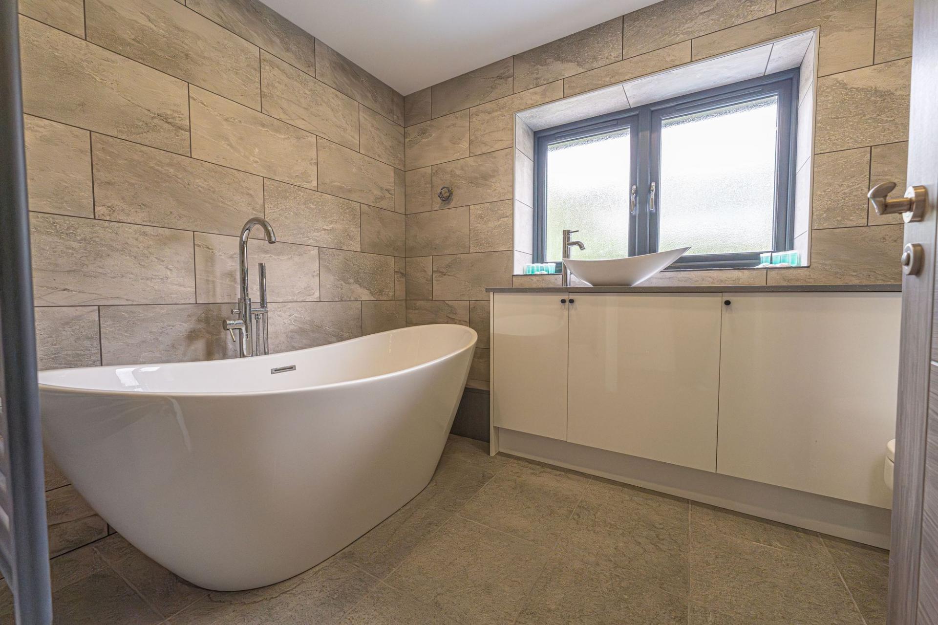 Ascending to the first floor we can find the property offering four generously sized bedrooms, which are all double in size. Two of these bedrooms have the added benefit of en-suite bathrooms with a shower and toilet, while the communal family bathroom is available to access from the landing, and features both a bathtub and a separate shower suite.