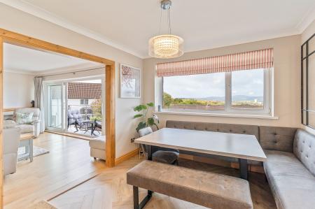 The main living area occupies the upper floor, designed to make the most of the spectacular views. The spacious lounge features large sliding doors and windows that open onto the balcony, providing an incredible outlook across the valley - perfect for relaxing or entertaining. The open-plan layout seamlessly connects to the modern kitchen/diner, creating a bright and sociable space ideal for family life. The kitchen is fitted with a range of contemporary units, ample storage and worktop space, and room for both seating and dining, making it a truly versatile area for cooking and entertaining.