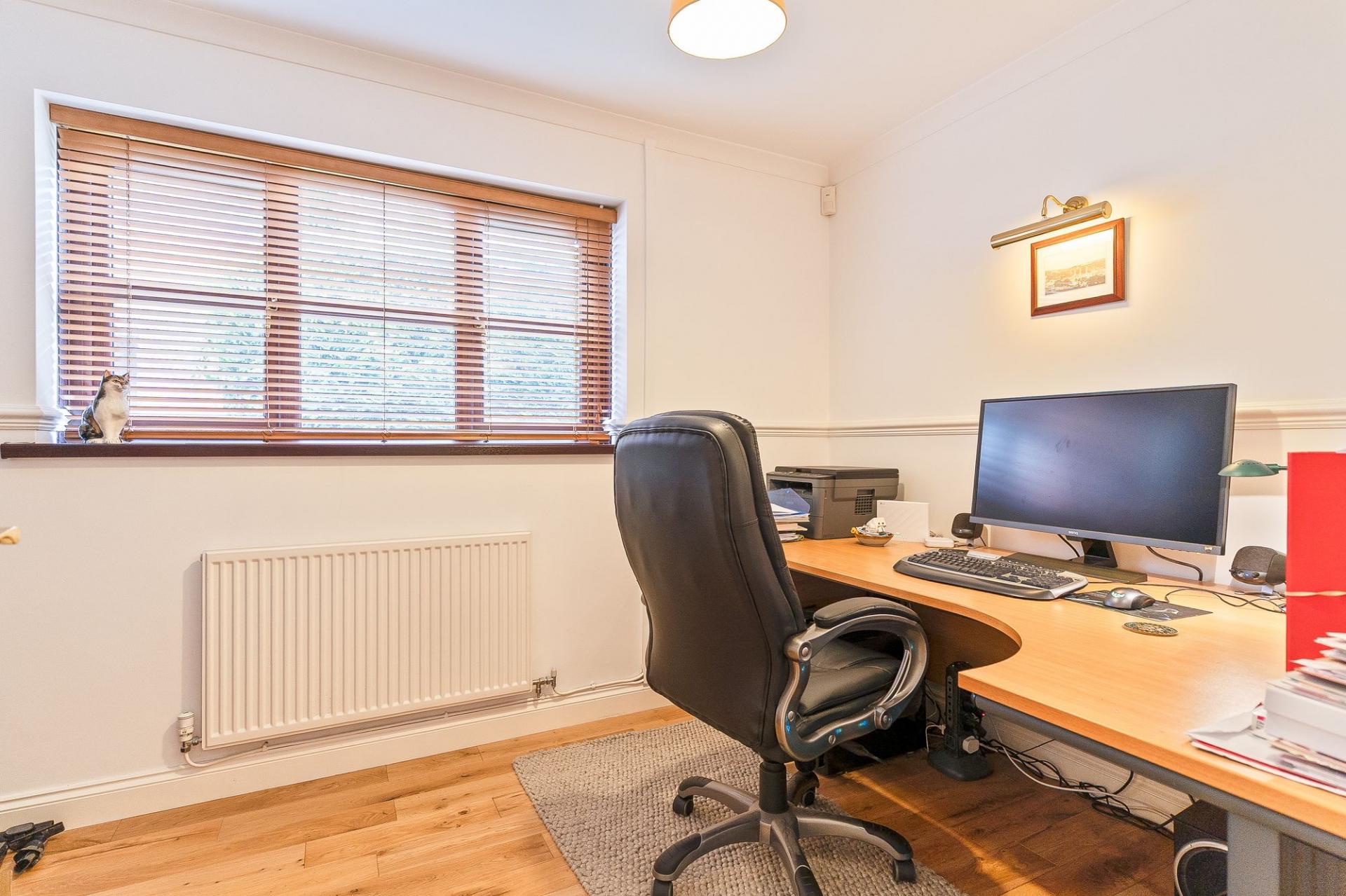 Beautifully presented throughout, on the ground floor we have a spacious living room to the front of the property that folds into the dining room, making this an optional open plan area with double doors separating the rooms. From the dining room, double doors open to the garden, creating a fantastic entertaining space. The kitchen can also be found at the rear overlooking the garden, with a spacious utility, offering side access. From the hallway, there is a superb study, perfect for those working from home and a convenient downstairs cloakroom. The driveway allows ample parking along with the large garage.