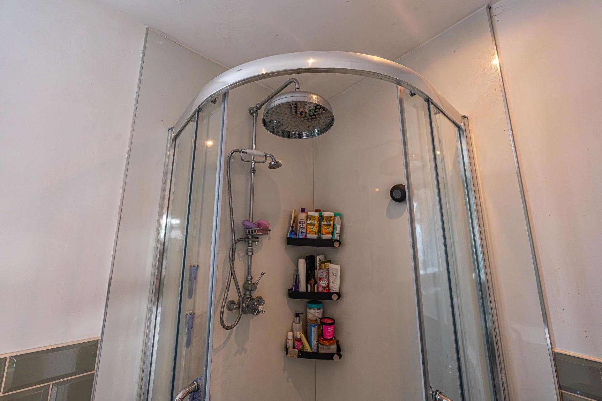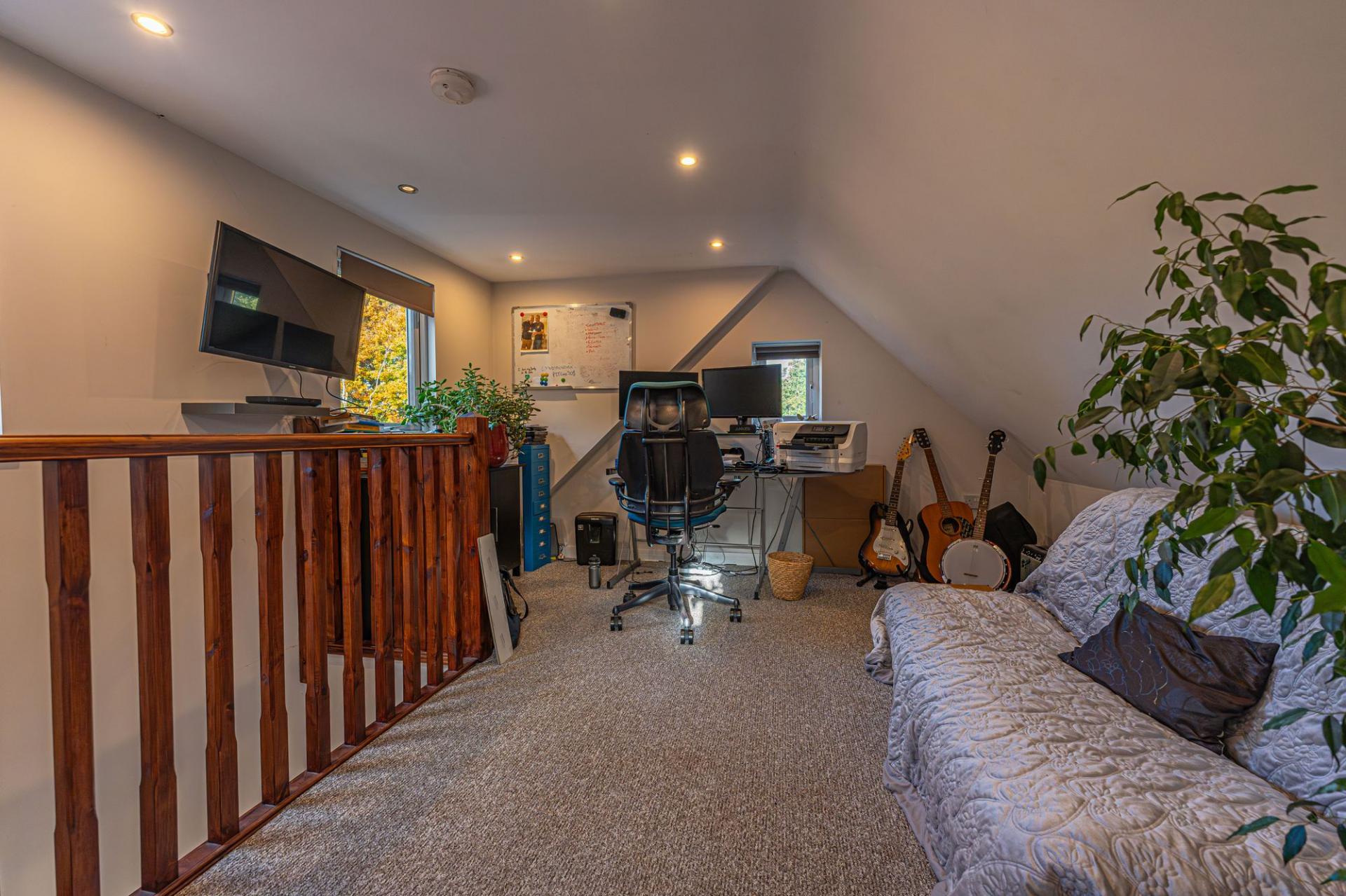 Another great attraction is the garage, which has been meticulously converted from a single level into a double storey annex, with lighting and power to support multi-generational living. Upon entry to the annex we have a spacious ground floor living area which is well lit and versatile in design - currently used as a home gym. The ground floor also features a connected shower room, while the floor above is staged as another office space, ideal for those who work from home.