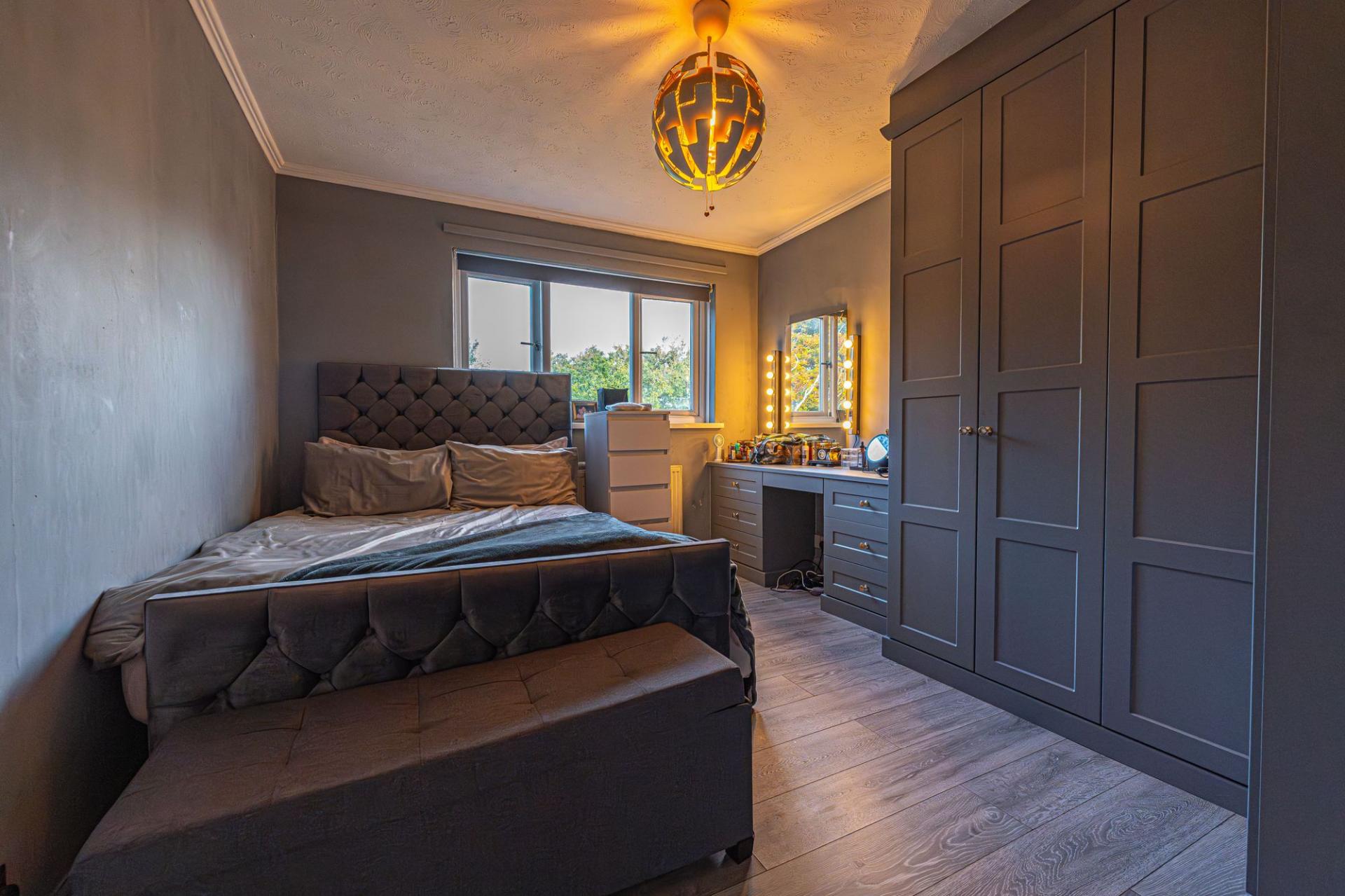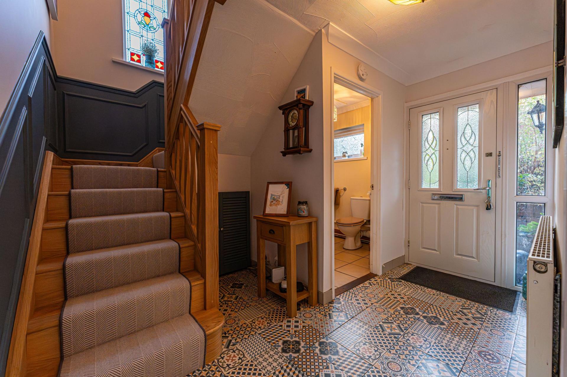 To the first floor we have five bedrooms, which are all well proportioned, with four of the rooms being double in size, and the final bedroom a comfortable single - currently staged as a fantastic home office. Another highlight of the first floor is convenient storage space offered by fitted wardrobes found in several of the bedrooms, while from the hallway the family bathroom is equipped with a bathtub and a separate shower suite.