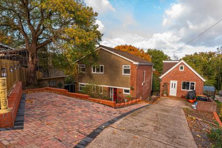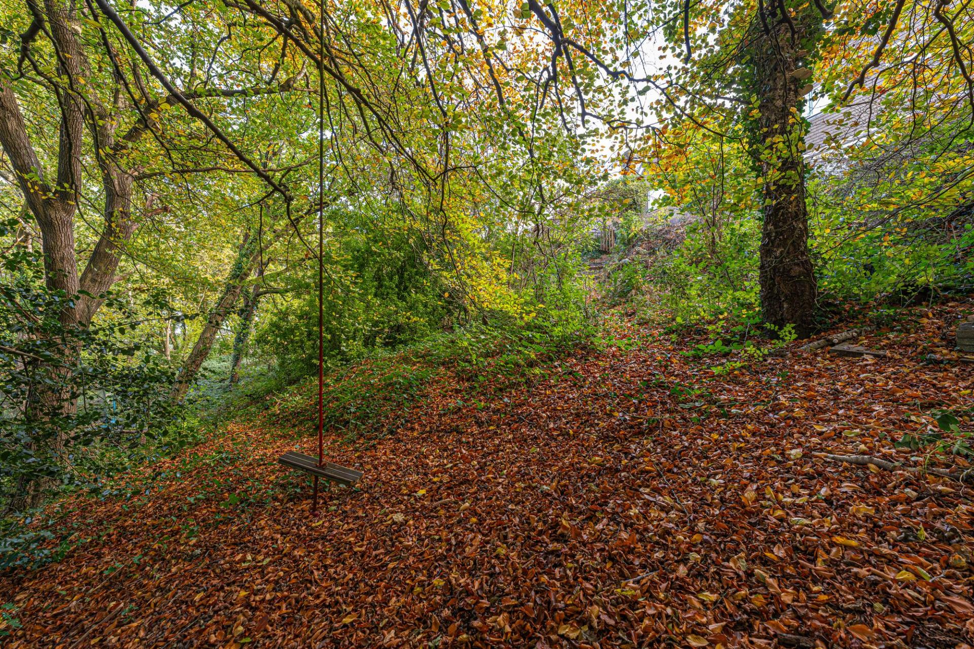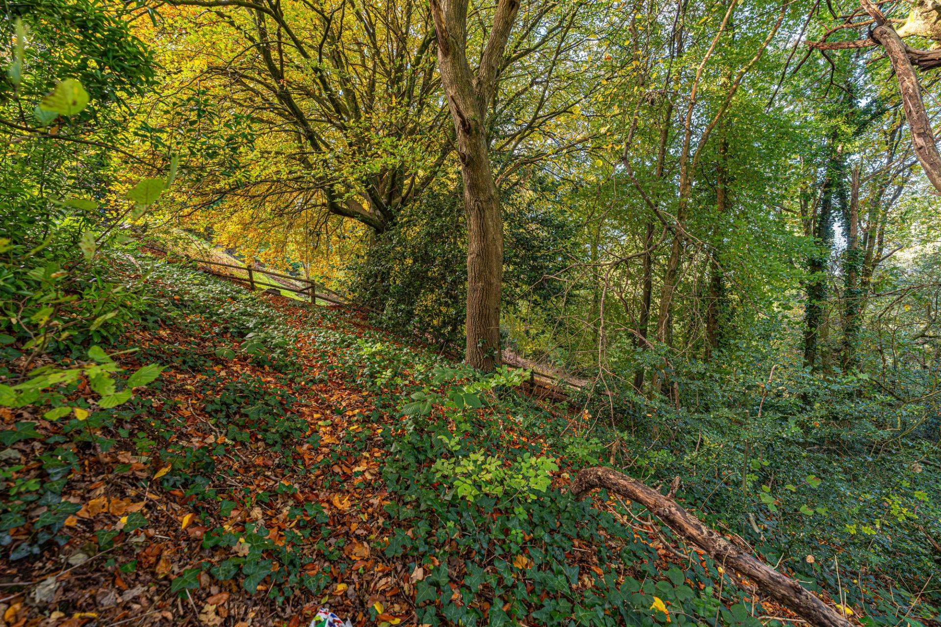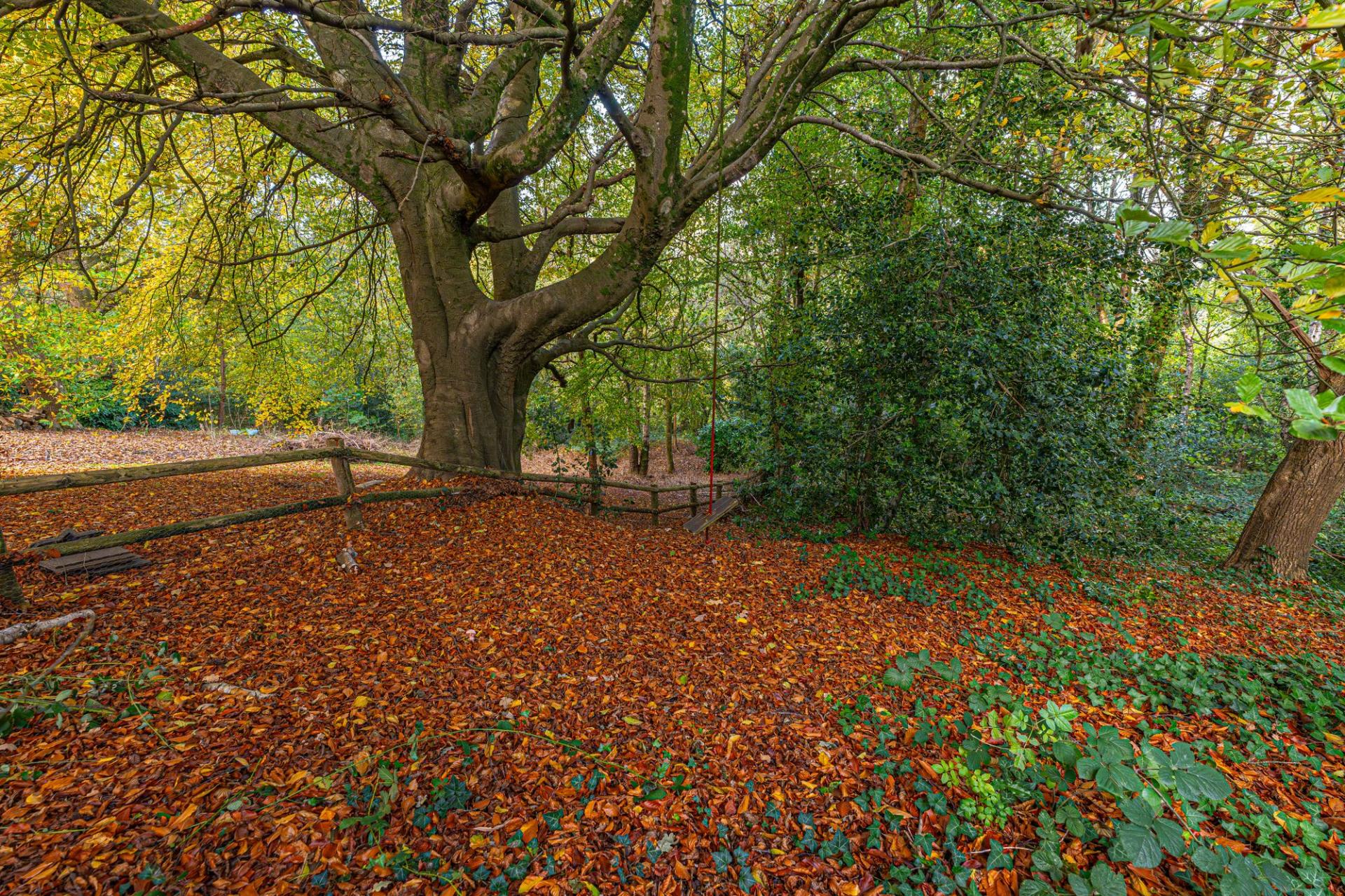 Stepping outside we have the spacious rear garden, which features multiple patio areas and a large lawn, ideal for relaxing in the sunshine, and welcoming guests for tea/coffee or dining al-fresco style. The grounds are framed by mature trees beyond, with the property having the unique benefit of a private woodland area totaling around 1/3 of an acre, highlighting an superb rural space to escape into. The front of the house can be found with a large lawn and an extensive driveway providing ample off-road parking for multiple vehicles, ensuring convenience for families and guests.
