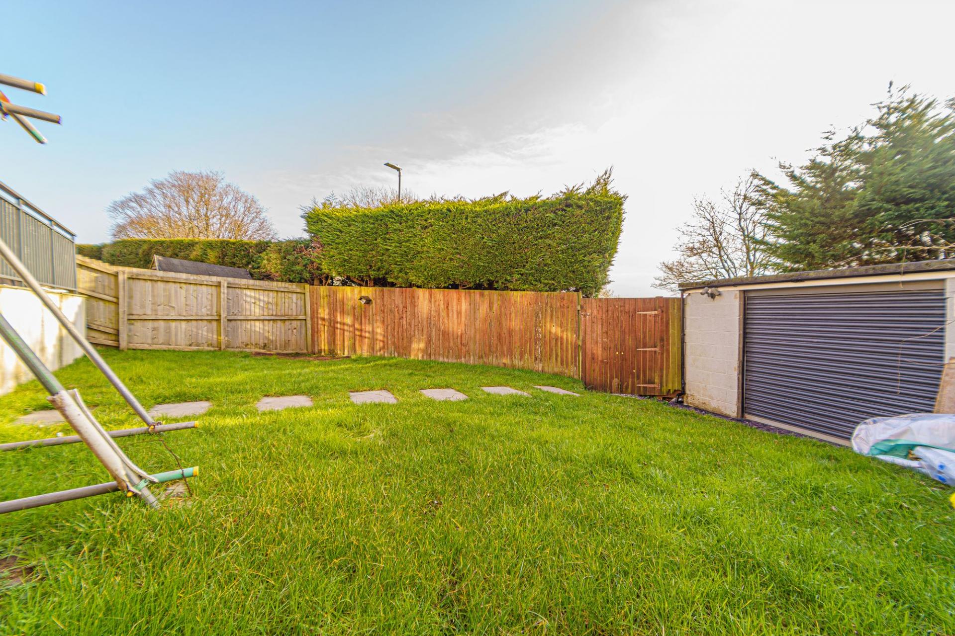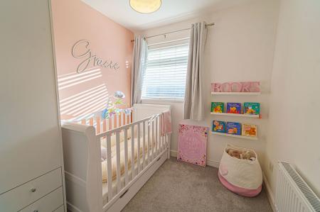 Stepping outside we have the impressive rear garden, which is fully enclosed and consists of a well sized patio from the house, overlooking a large grass lawn below that is perfectly sized for welcoming guests, with a useful storage shed found beyond. The garden as a whole is perfect for various outdoor activities, and has a rear gate to access a public field with a play area, ideal for young children. At the front of the house we can find a driveway to provide off-road parking options, while there is additional space to the front of the house that could be used to park further vehicles.