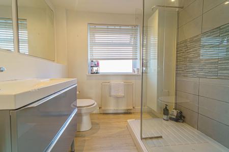 Ascending to the first floor we have the four bedrooms, three of which are well sized double rooms with the fourth being a comfortable single, which could also be used as a home office or a dressing room. The master bedroom has the added benefit of an ensuite bathroom with a toilet and walk in rainfall shower, while the family bathroom found from the landing has a bath tub with handheld shower unit.