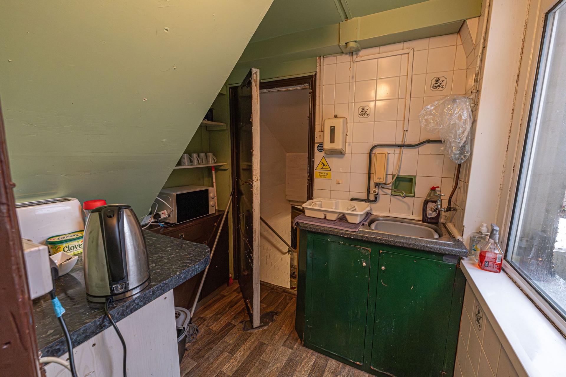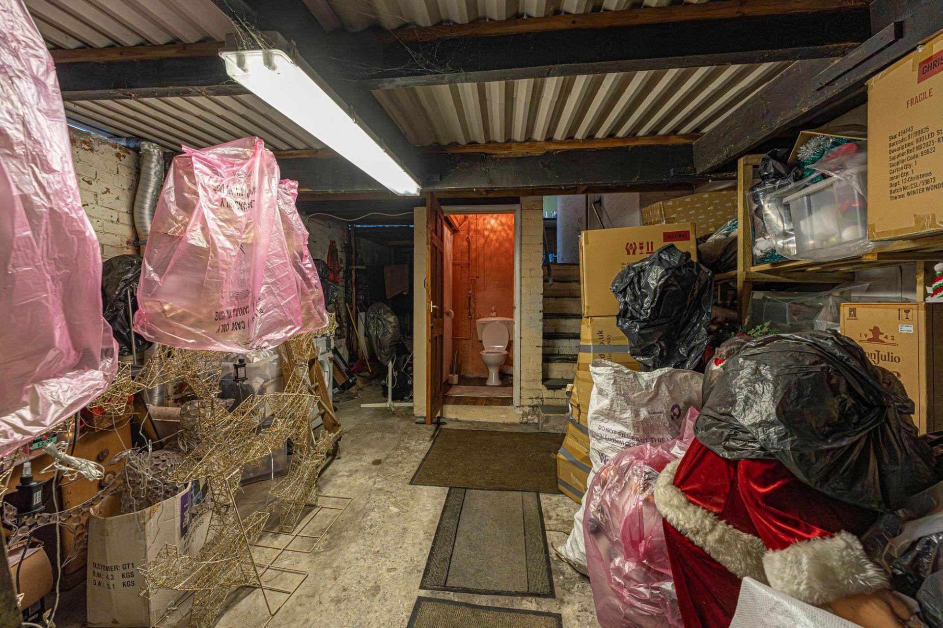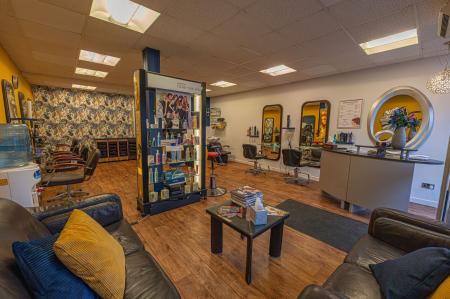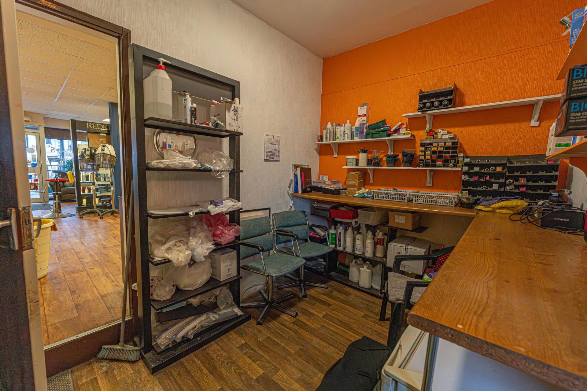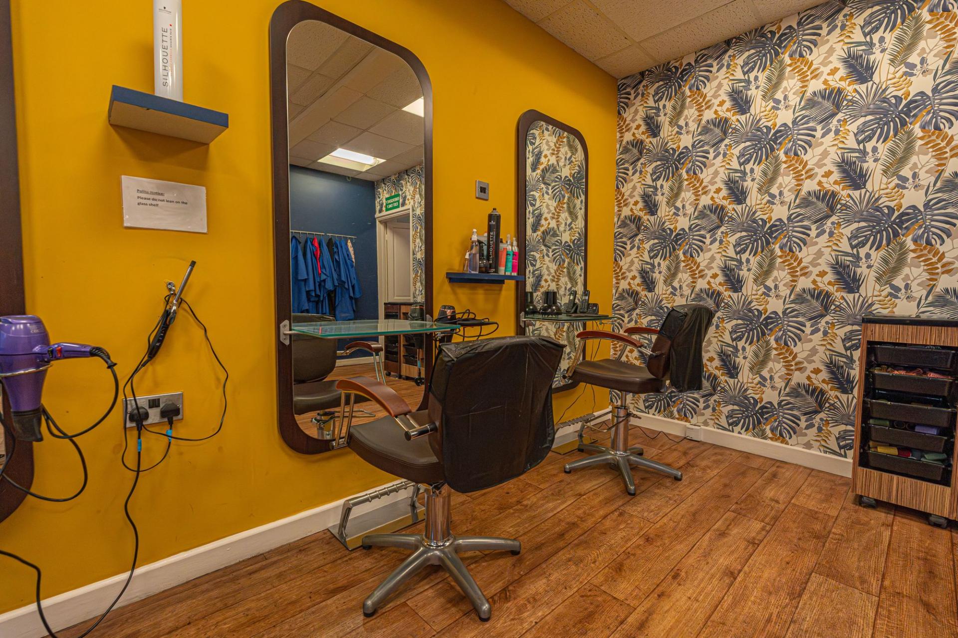 On the ground floor of the property we have the main business space, which features an extensive shop floor, complete with a waiting area, reception desk, and a large array of salon chairs, mirrors, and equipment. The shop floor features large windows at the front of the house to flood the room with light, as well as several overhead light fixtures. Continuing through the premises we have a well sized store room, and a practical kitchen, before taking a staircase down to the sizeable basement, offering a huge amount of versatile storage space to make use of, as well as a W.C and a doorway to the rear of the property.