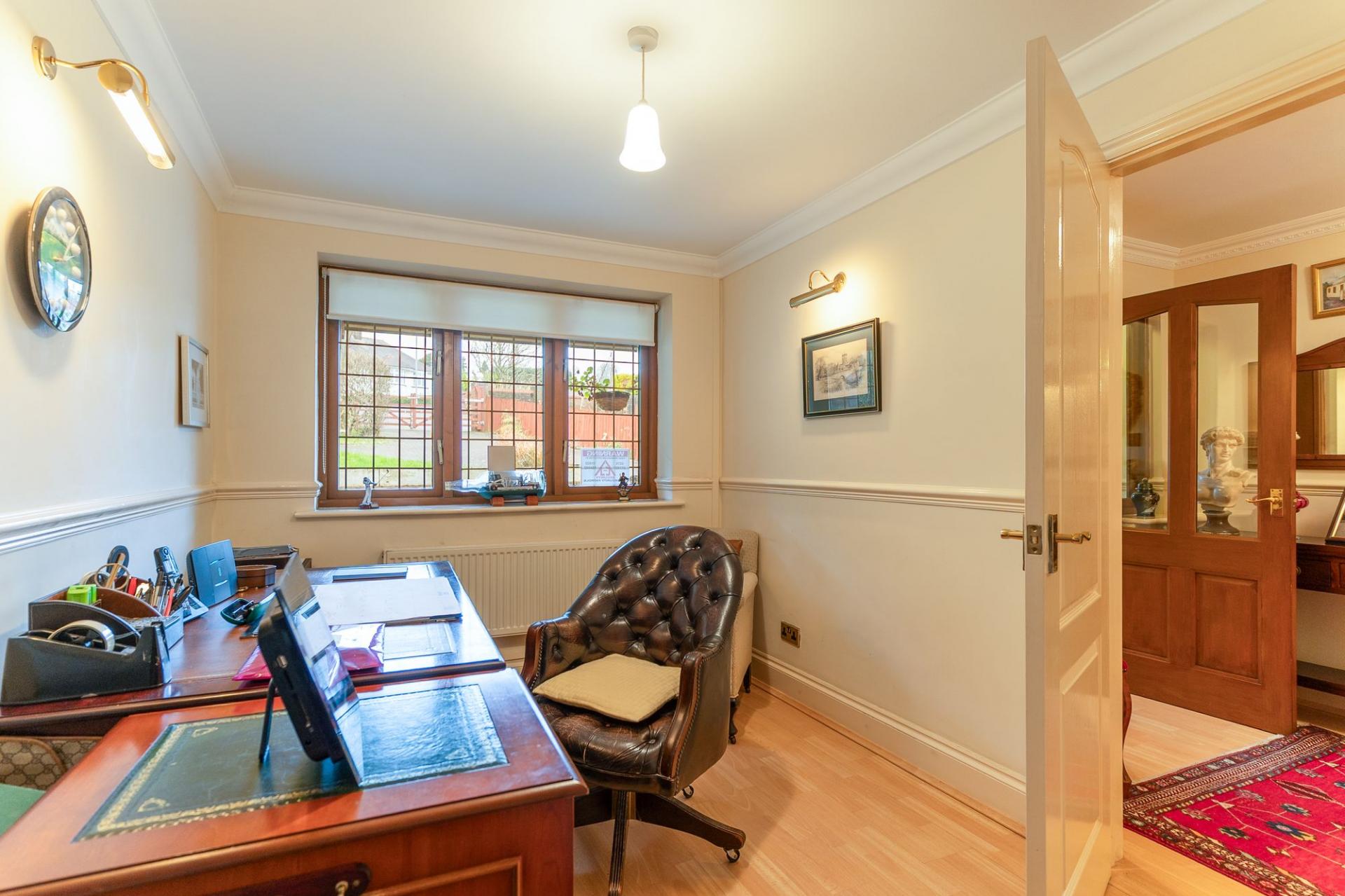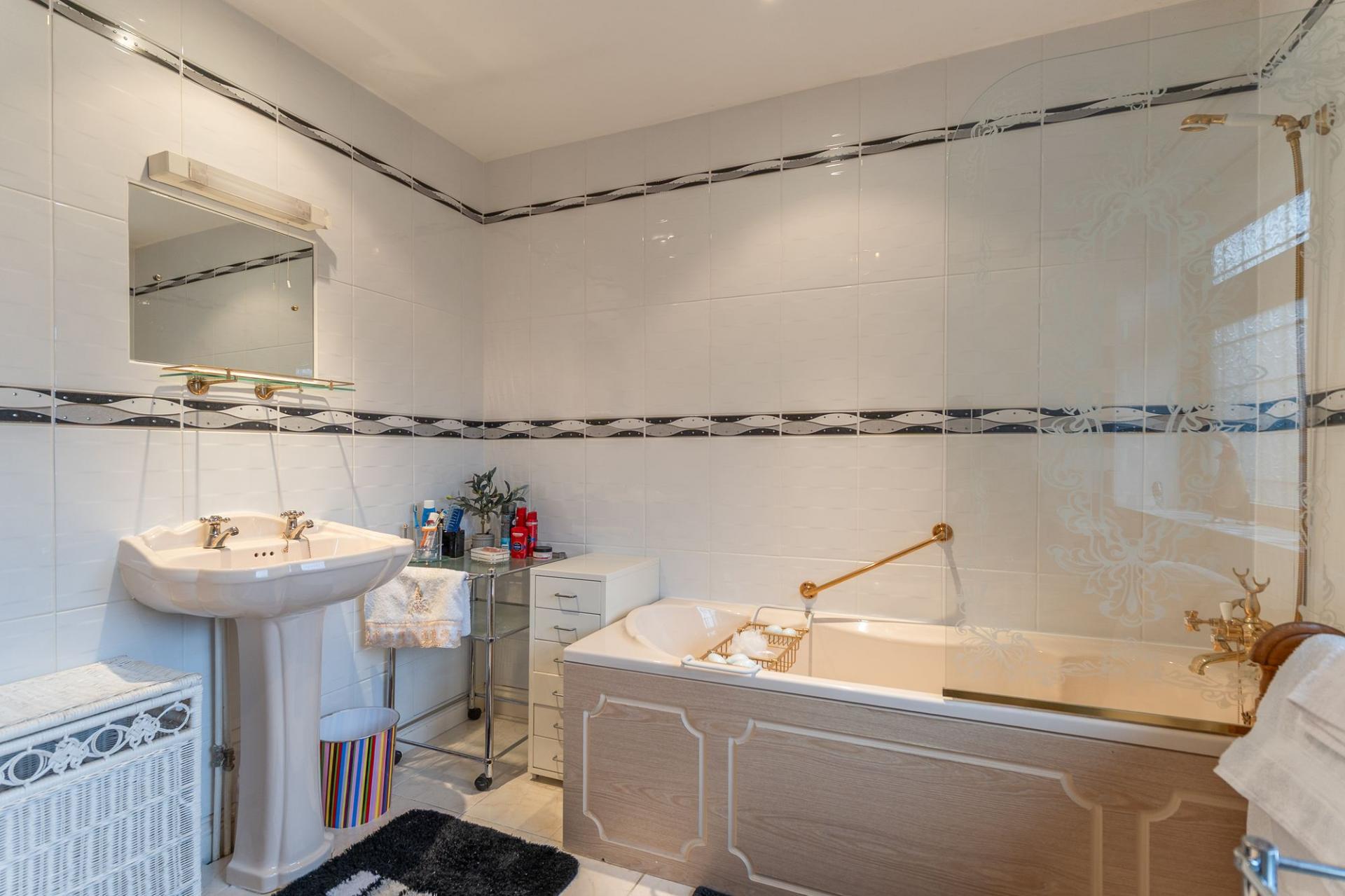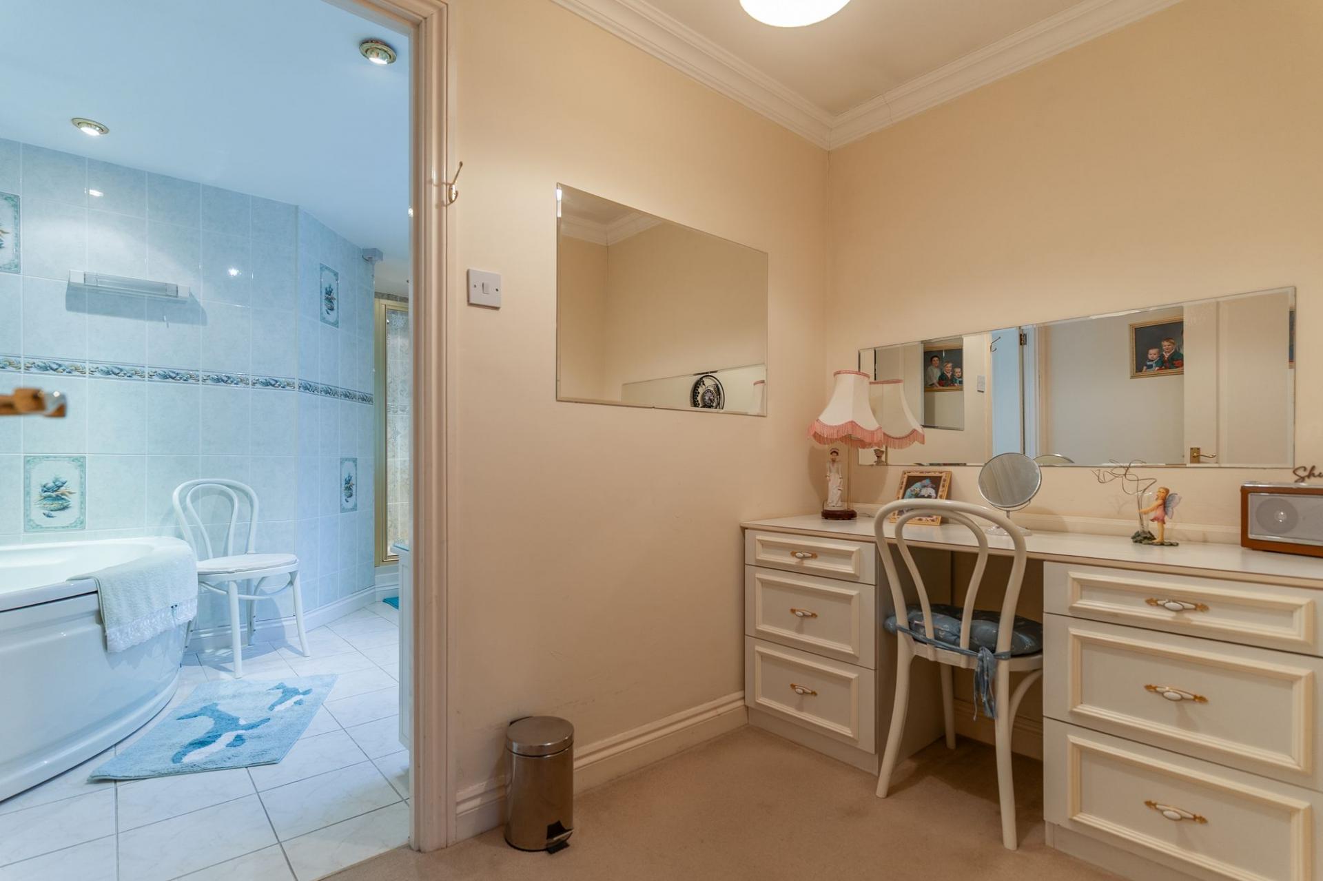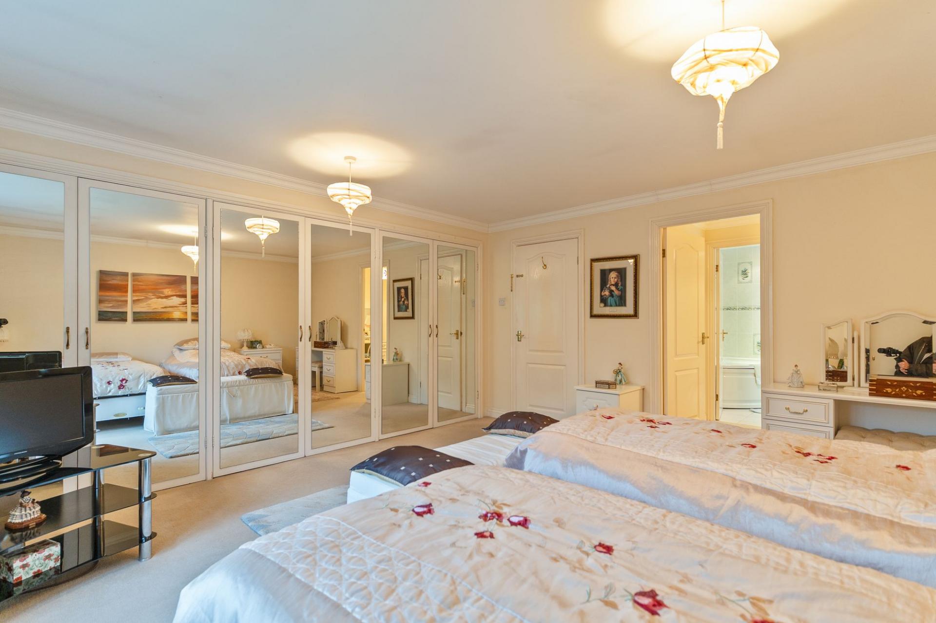 The first floor features a grand landing leading to four generously sized double bedrooms, all offering excellent proportions and flexibility for family living. The primary bedroom further benefits from its own dressing area and a well-appointed en-suite bathroom. The remaining bedrooms are served by a spacious family bathroom.