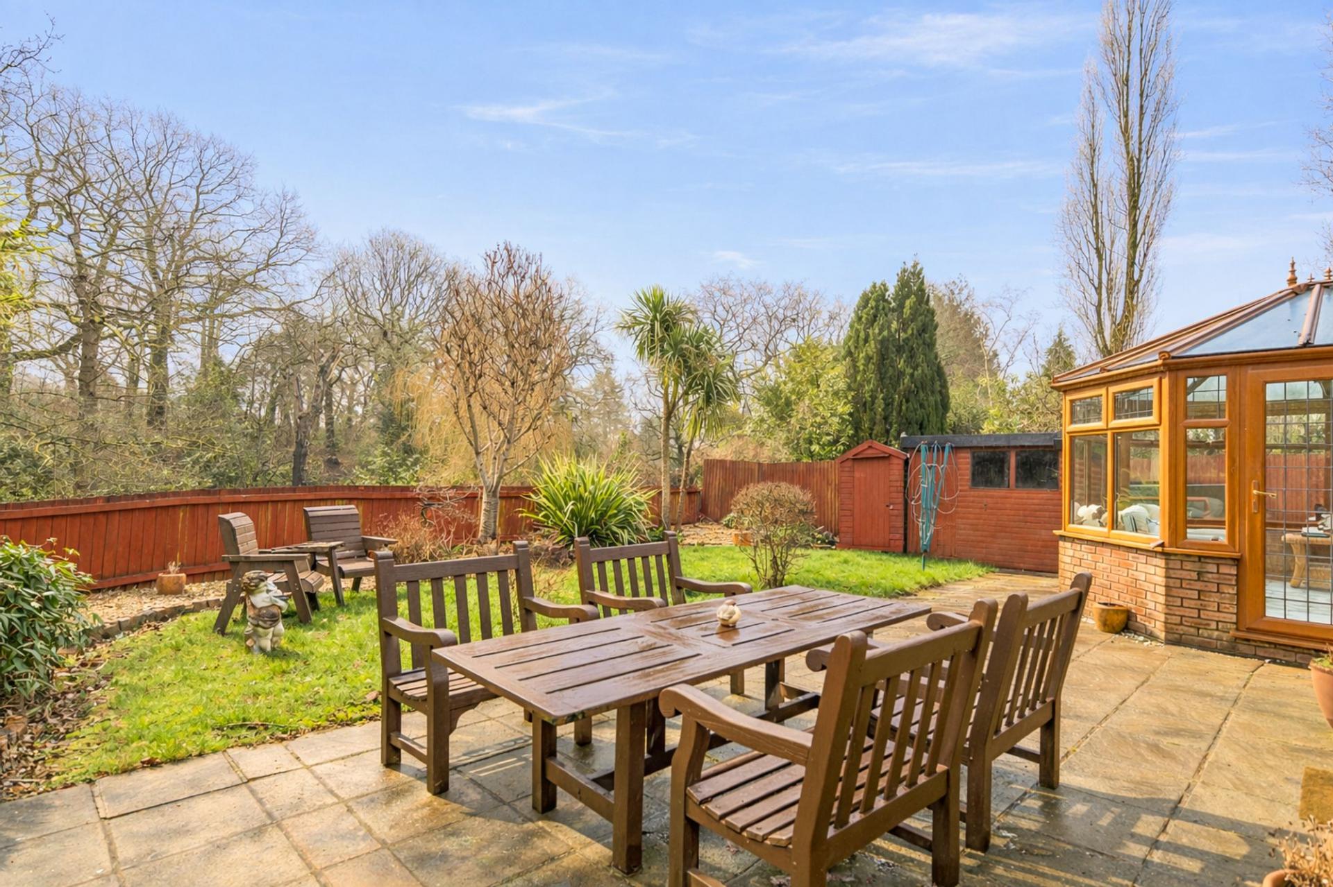 Externally, the property is set back from the road behind a gated driveway, providing secure off-road parking and enhancing privacy. The enclosed garden offers a private outdoor retreat, ideal for family enjoyment, entertaining or relaxing in a peaceful setting.