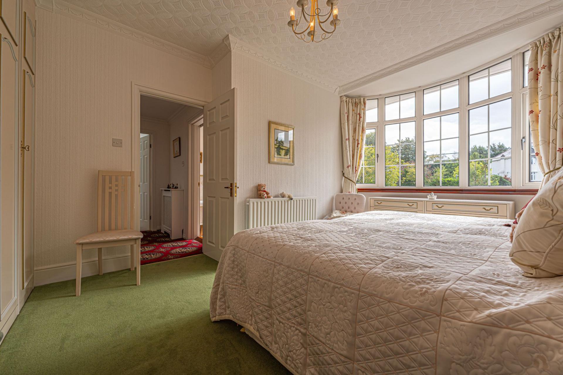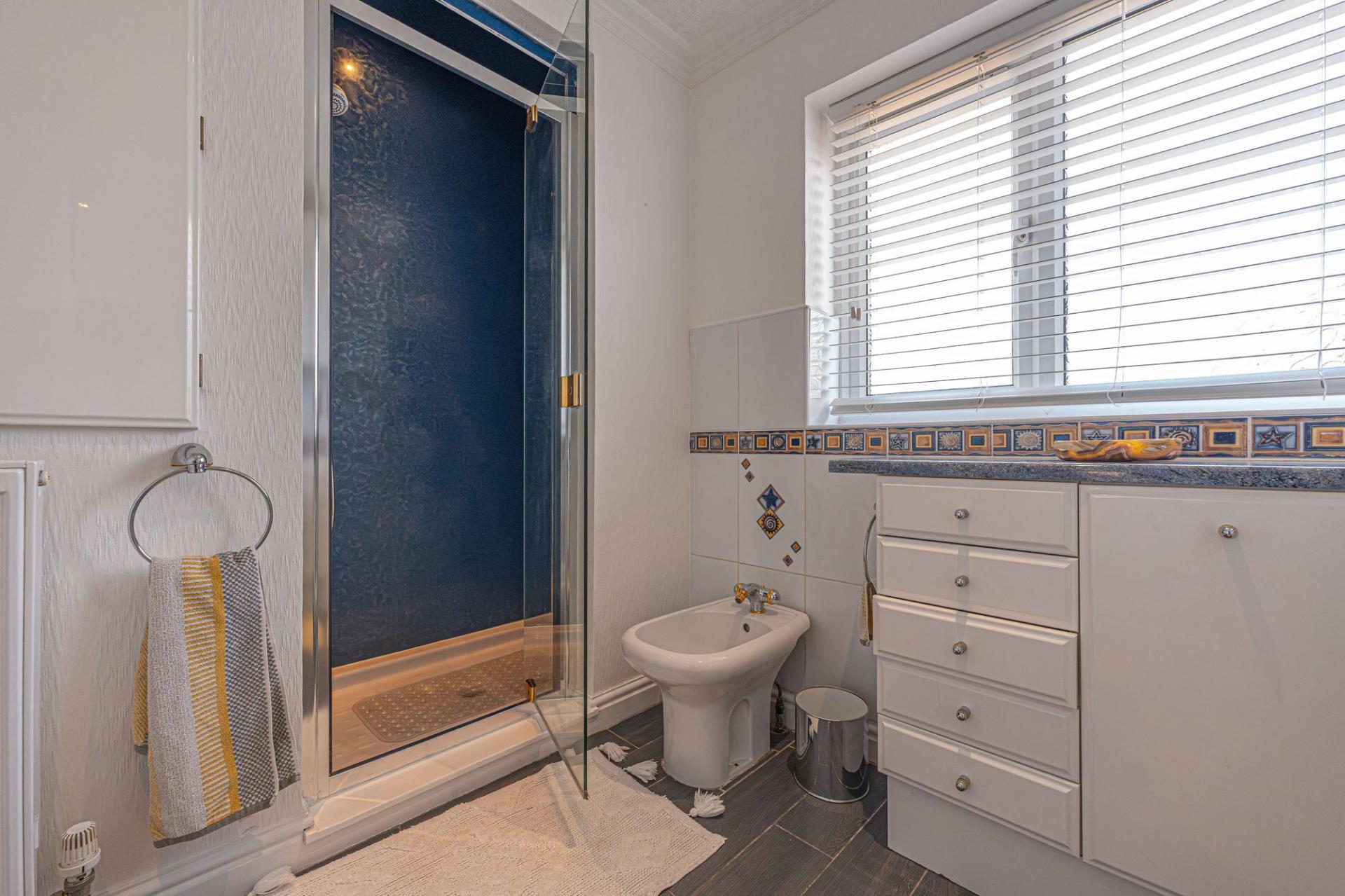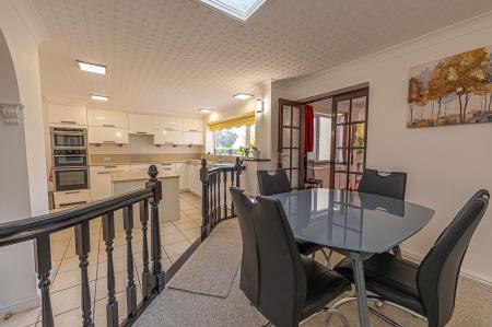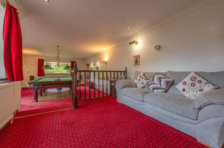 Upon entry to this extravagant family home, we can find a welcoming entry hall with direct access to two reception rooms. with a relaxing living room and a lovely dining room. Both of these rooms are spacious in size and flooded by natural light through large bay front windows, while the living room has the added benefit of a pulldown projector screen, transforming this incredible space into a large home cinema. Continuing through the property we arrive at the impressive kitchen, which offers a wide range of integrated appliances and storage options, including a fitted pantry cupboard, and space for another dining area or breakfast nook. From the kitchen we also find another sitting room, and the colossal snooker room, which is ideal for entertaining guests, and offers a sizeable layout that would also be well suited to a wide range of different purposes. The snooker room offers multiple aspect windows to illuminate the room, including double doors that open directly into the garden. Also found on the ground floor is a helpful utility hall with access to a W.C, as well as a secondary kitchen, equipped with a great range of storage options, and even a helpful shower cubicle.