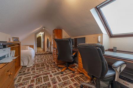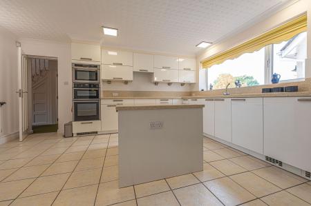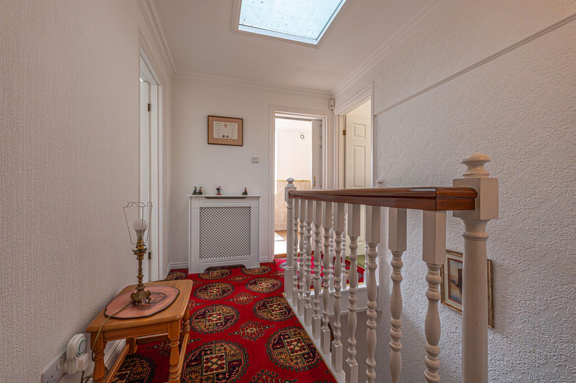 To the first floor we can find the five impeccable bedrooms, which are all of a generous proportion, and each come equipped with various forms of fitted wardrobes and cupboard to ensure optimal storage space throughout the home. From the main hallway we can find four double bedrooms, two of which enjoy the luxury of en-suite shower rooms, while there is another communal bathroom available from the hallway. The fifth bedroom also enjoys access to an en-suite bathroom, and is currently doubled up as a fantastic office room, and with its position slightly away from the main living quarters, this is a perfect space for looking for a private study within the comfort of their own home. In addition to the great utility this fifth bedroom provides, from the corridor we can find numerous storage cupboard in the eaves of the attic.