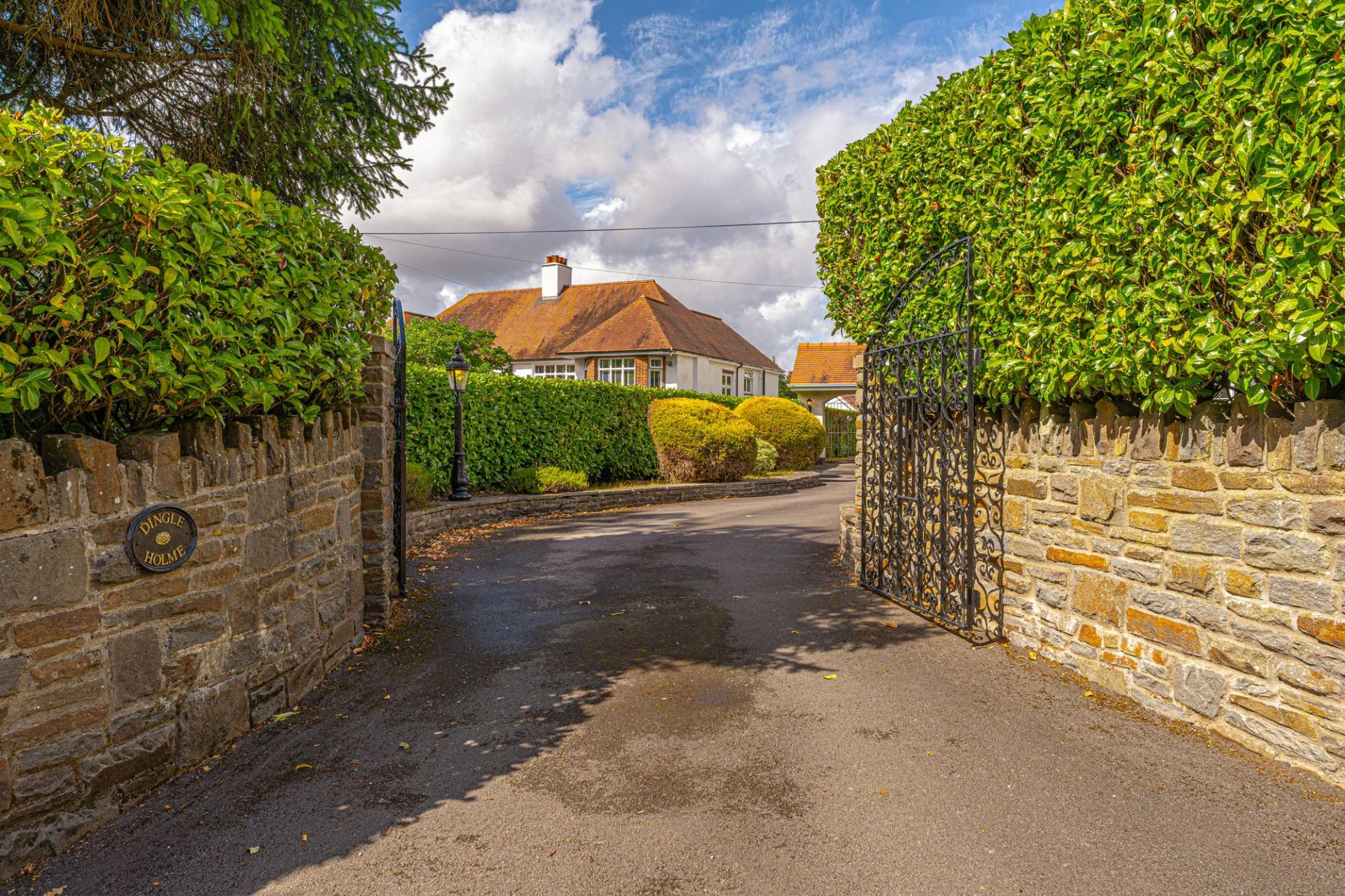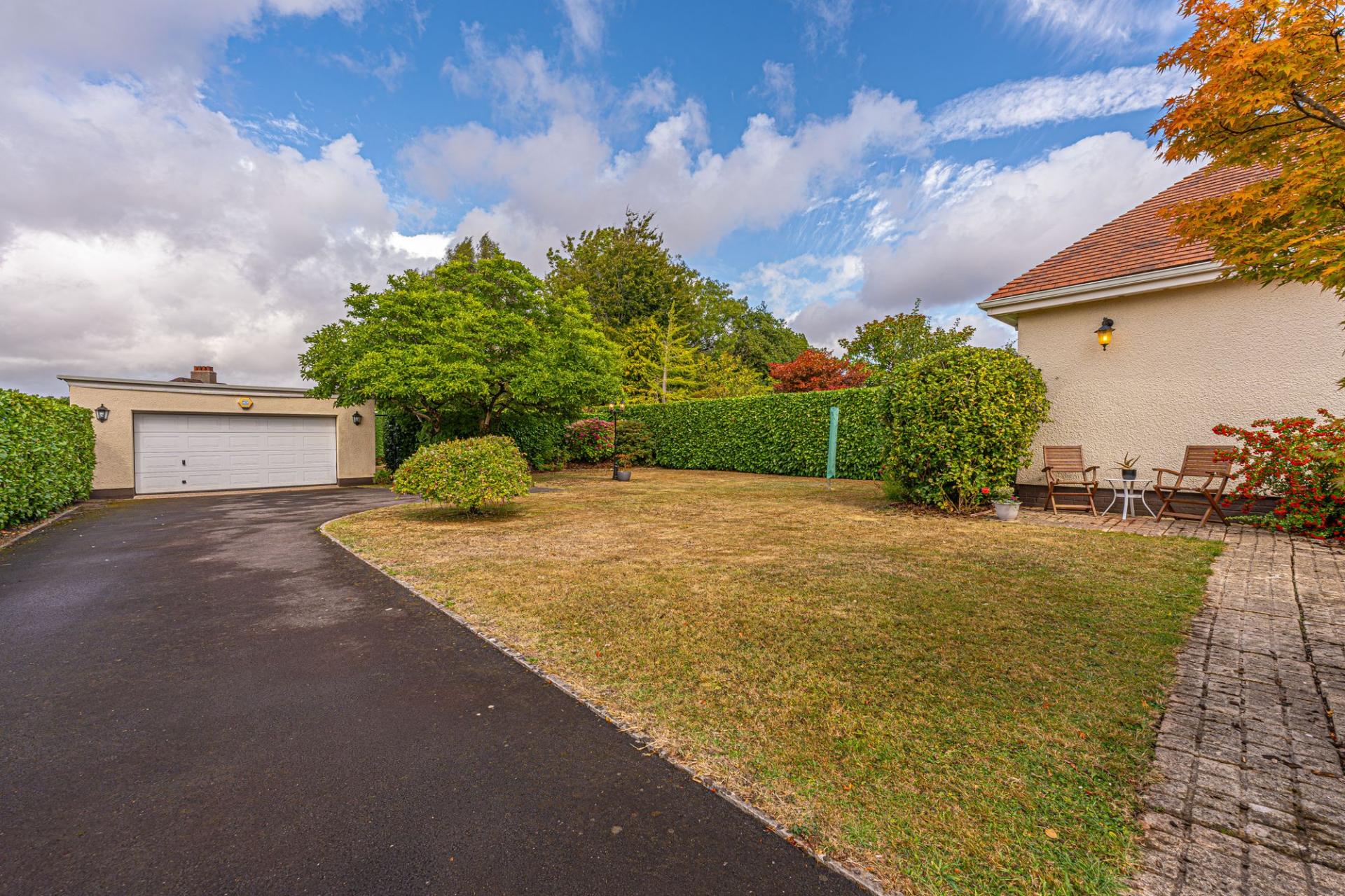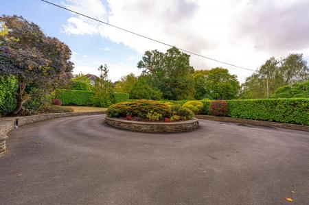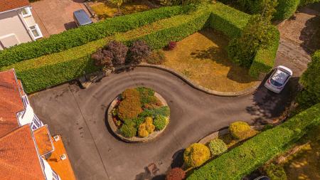 Positioned at the front of the house is an impressive gated driveway, with a charming roundabout adorned with flowers and shrubs to provide a warm welcome to the property, in addition to plenty of parking space. This driveway extends from the front through another gateway, stretching all the way to the garage at the bottom of the rear garden, providing countless parking opportunities for residents and visitors alike.