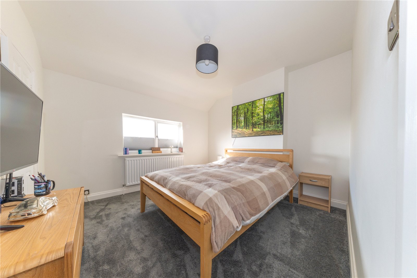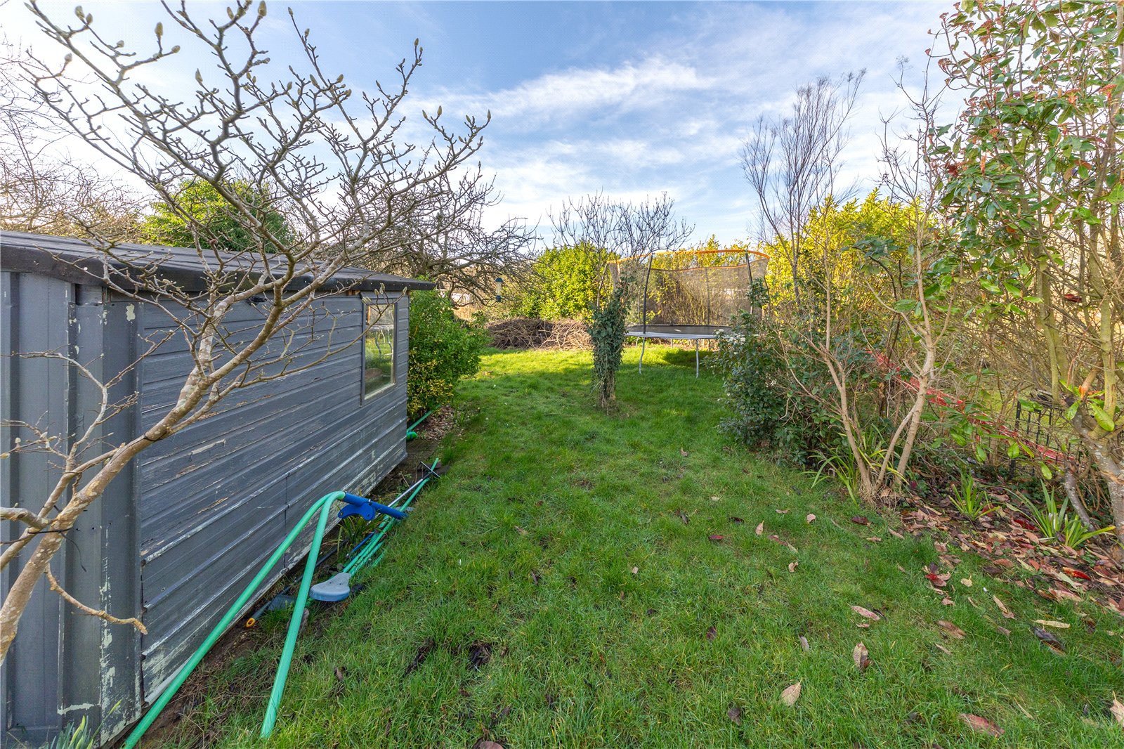Upstairs, the first floor offers three well-presented bedrooms. Bedroom one is a generous double with a large, fitted storage cupboard. Bedroom two is another double bedroom, also benefiting from a substantial storage cupboard, while bedroom three is a versatile single room, ideal as a bedroom or home office. Bedroom one overlooks the front gardens and village, while bedrooms two and three enjoy views over the open fields to the rear.
