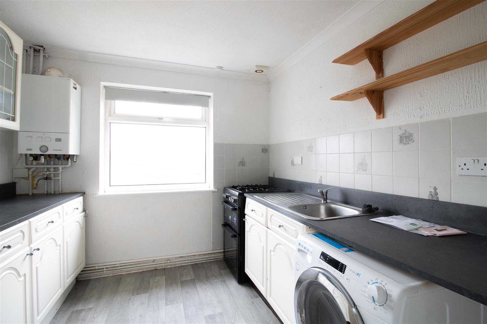 Kitchen - 3.09 x 2.72 (10'1" x 8'11") - UPVC double glazed window to rear, base and wall units, rollover edge work top, stainless steel sink with drainer and mixer tap, tile splash back, combi boiler, textured walls and ceiling, vinyl floor, radiator, power points.
