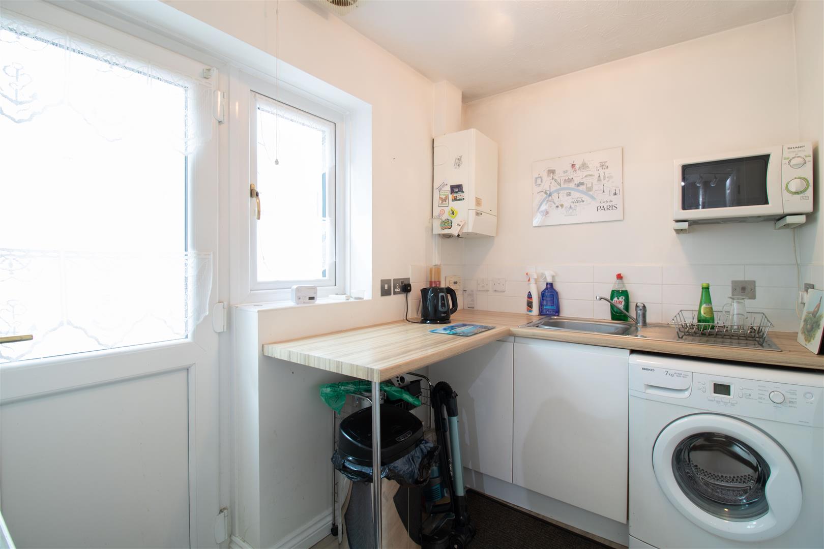 Utility Room - 2.37 x 1.72 (7'9" x 5'7") - UPVC double glazed window and door to rear, base units with roll edge worktop, stainless steel sink with drainer and mixer tap, combi boiler, plumbing for washing machine, door to garage, vinyl floor, radiator, power points