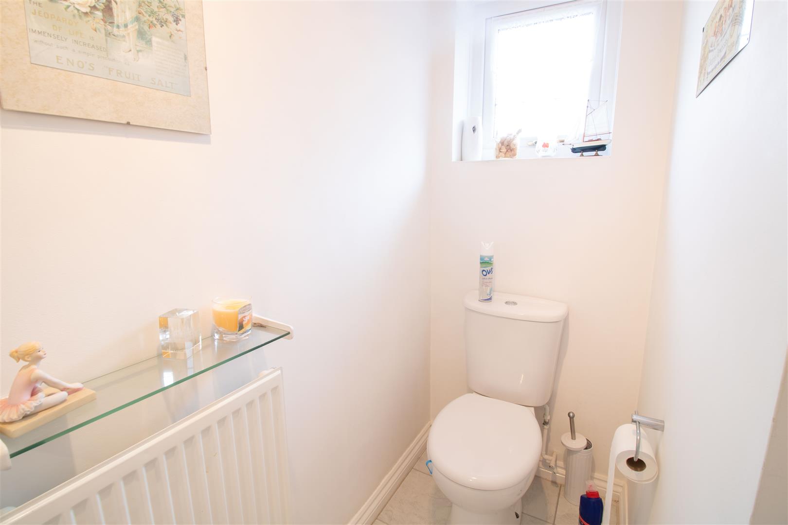 W/C - .85 x 2.02 (.278'10" x 6'7") - UPVC doubled glazed obscured window to front, vanity sink unit with basin, close couple w/c, plastered walls, textured ceiling, tiled floor, radiator.
