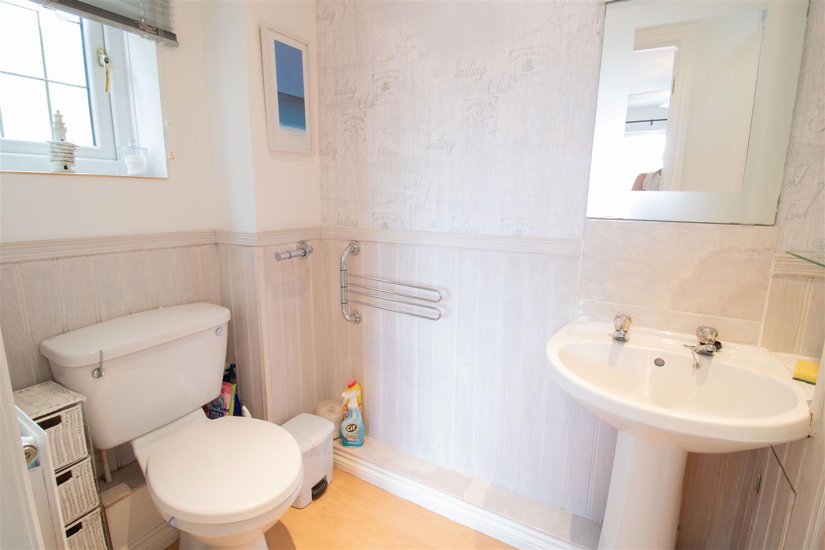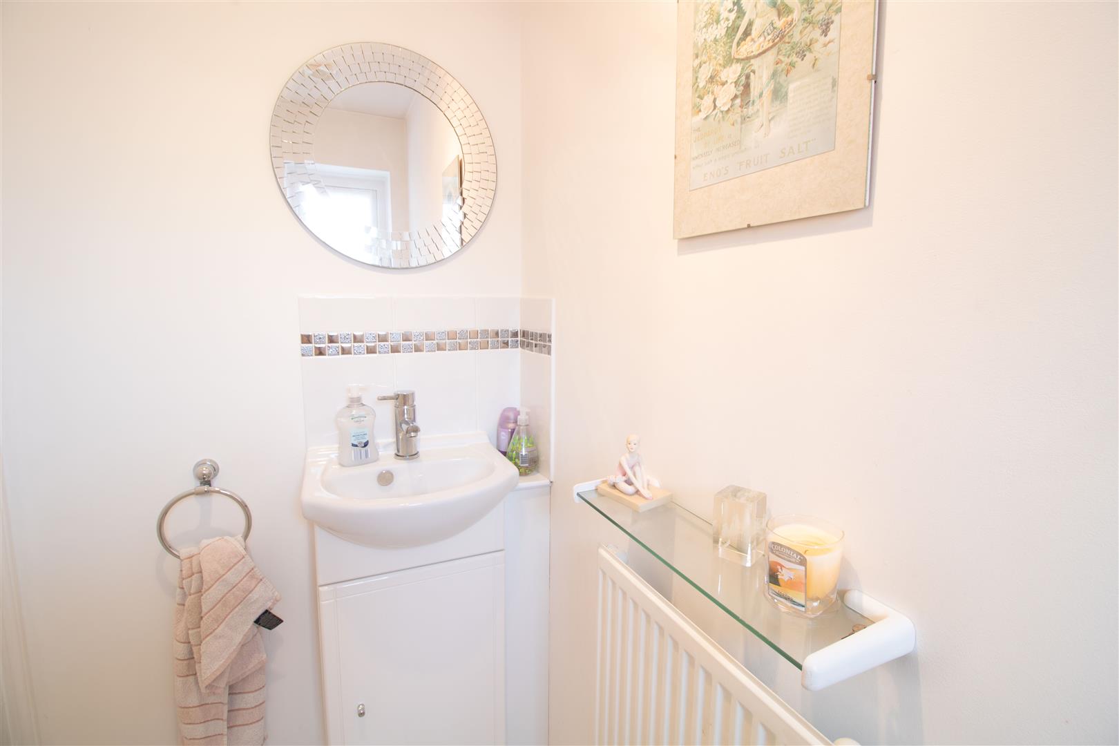 Bathroom - 2.04 x 1.89 (6'8" x 6'2") - UPVC double glazed obscured window to rear, panel bath, tile splash back, pedestal hand wash basin, low level w/c tiled floor, plastered walls, textured ceiling, radiator,