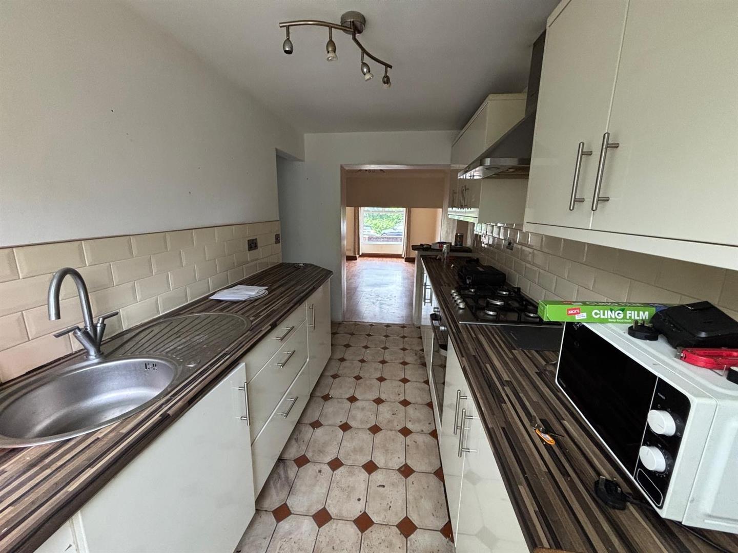 Kitchen - 2.00 x 3.94 (6'6" x 12'11") - UPVC double glazed window and door to rear, fitted cream gloss base and wall units, work surfaces over, stainless steel single drainer sink, splash back tiling, tiled floor.