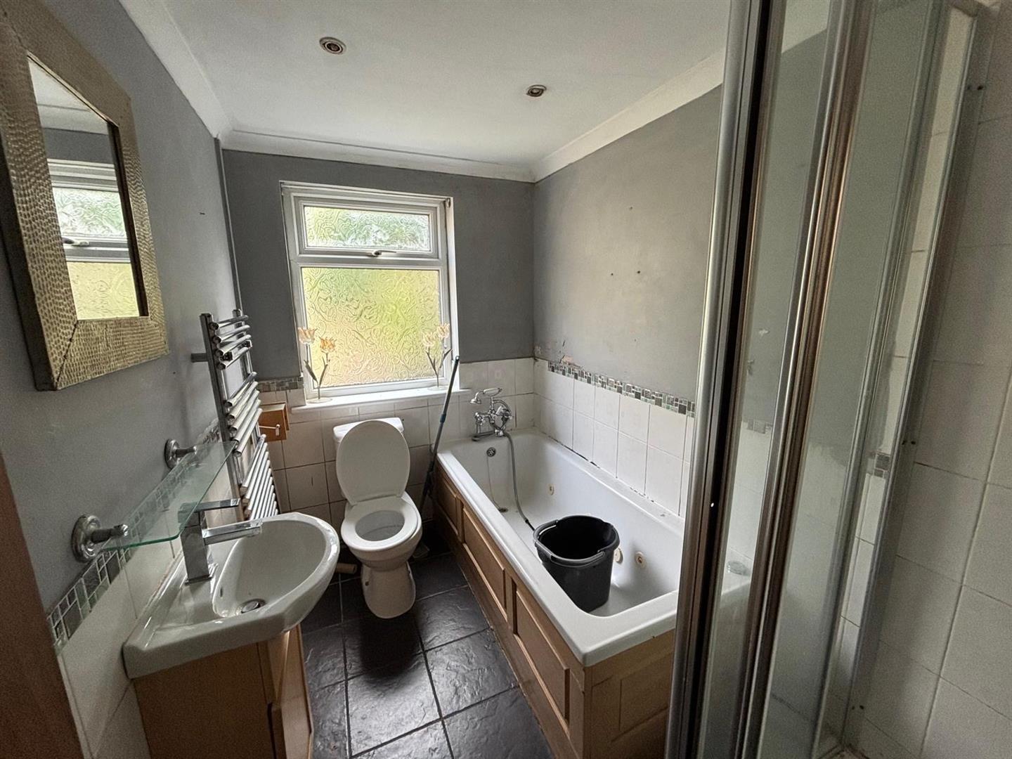 Bathroom - 1.68 x 2.69 (5'6" x 8'9") - UPVC double glazed obscured window to rear, panel bath, shower cubicle, pedestal wash hand basin, low level WC, splash back tiling, tiled floor.