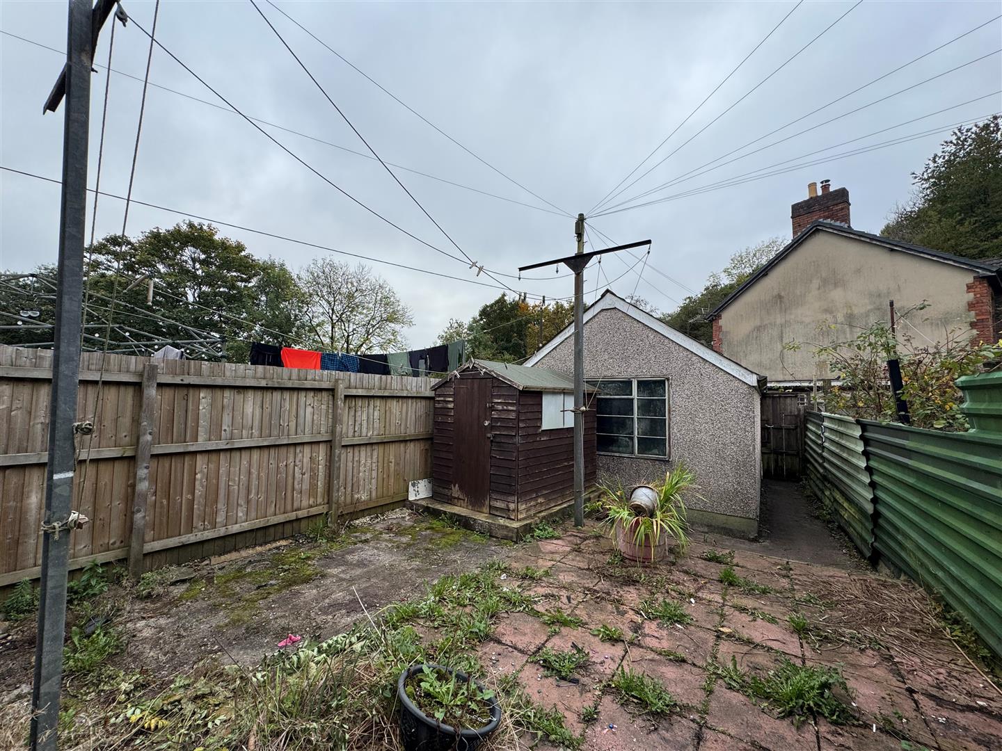 External - To Rear: Patio slabbed area, wooden shed, detached garage.
