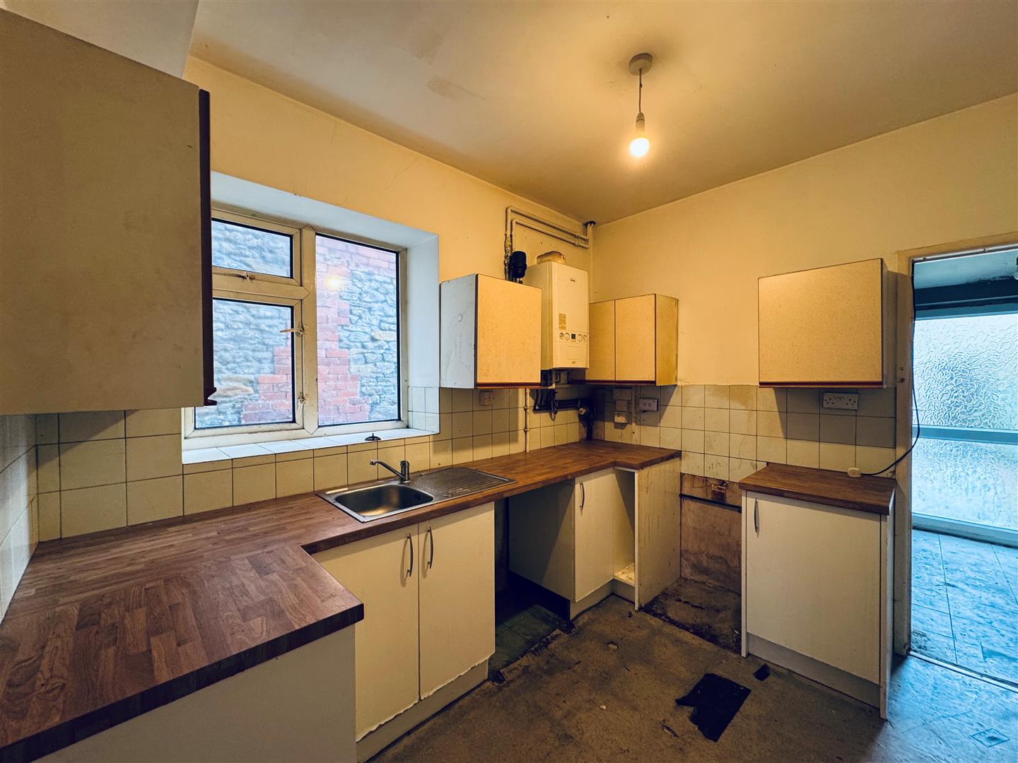 Kitchen - 3.9 x 2.7 (12'9" x 8'10") - UPVC double glazed window to side, base and wall units, roll edge worktop, stainless steel sink with drainer and mixer tap, tile splash back, plastered walls and ceiling, vinyl floor, boiler, radiator, power points.