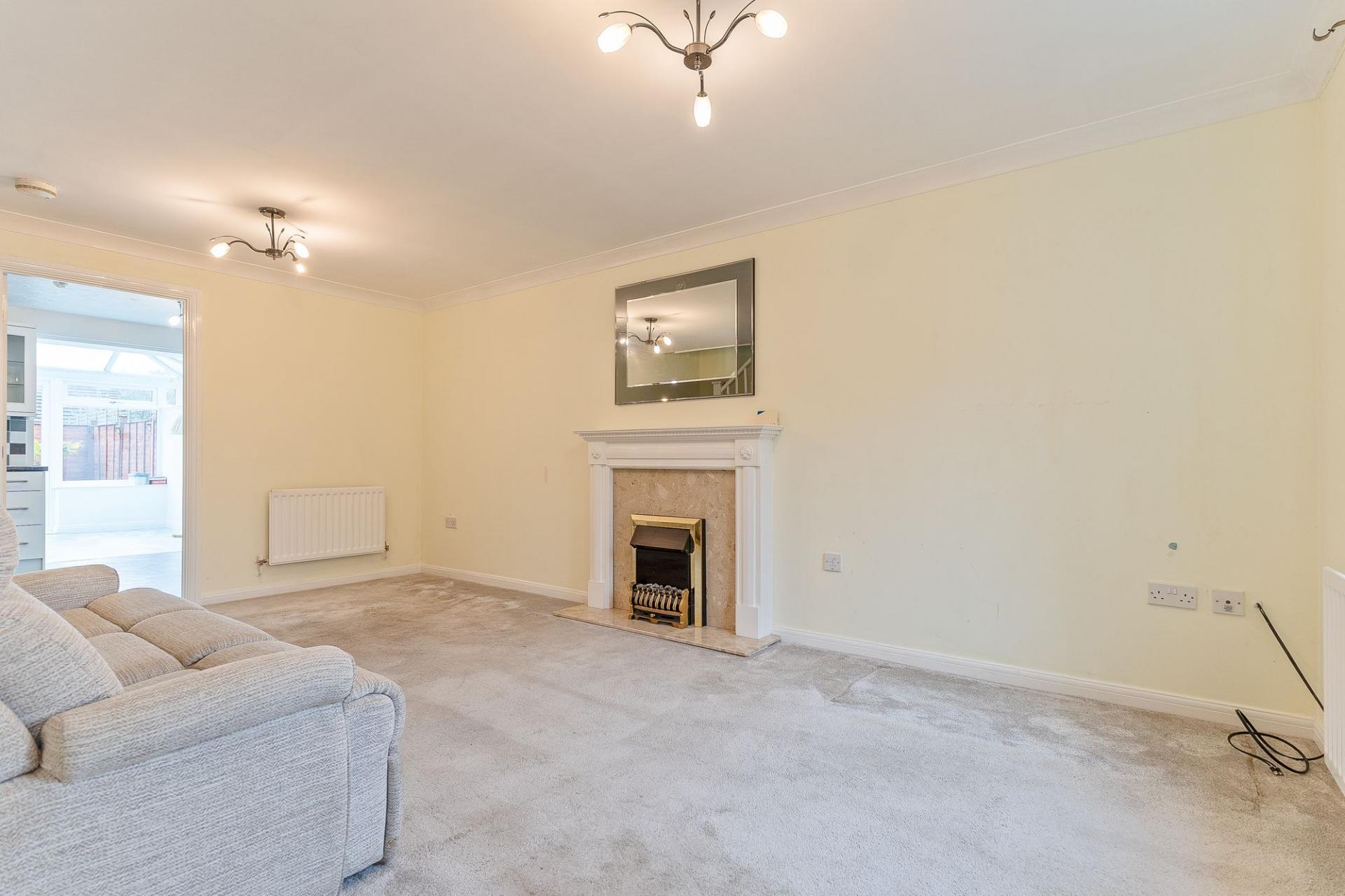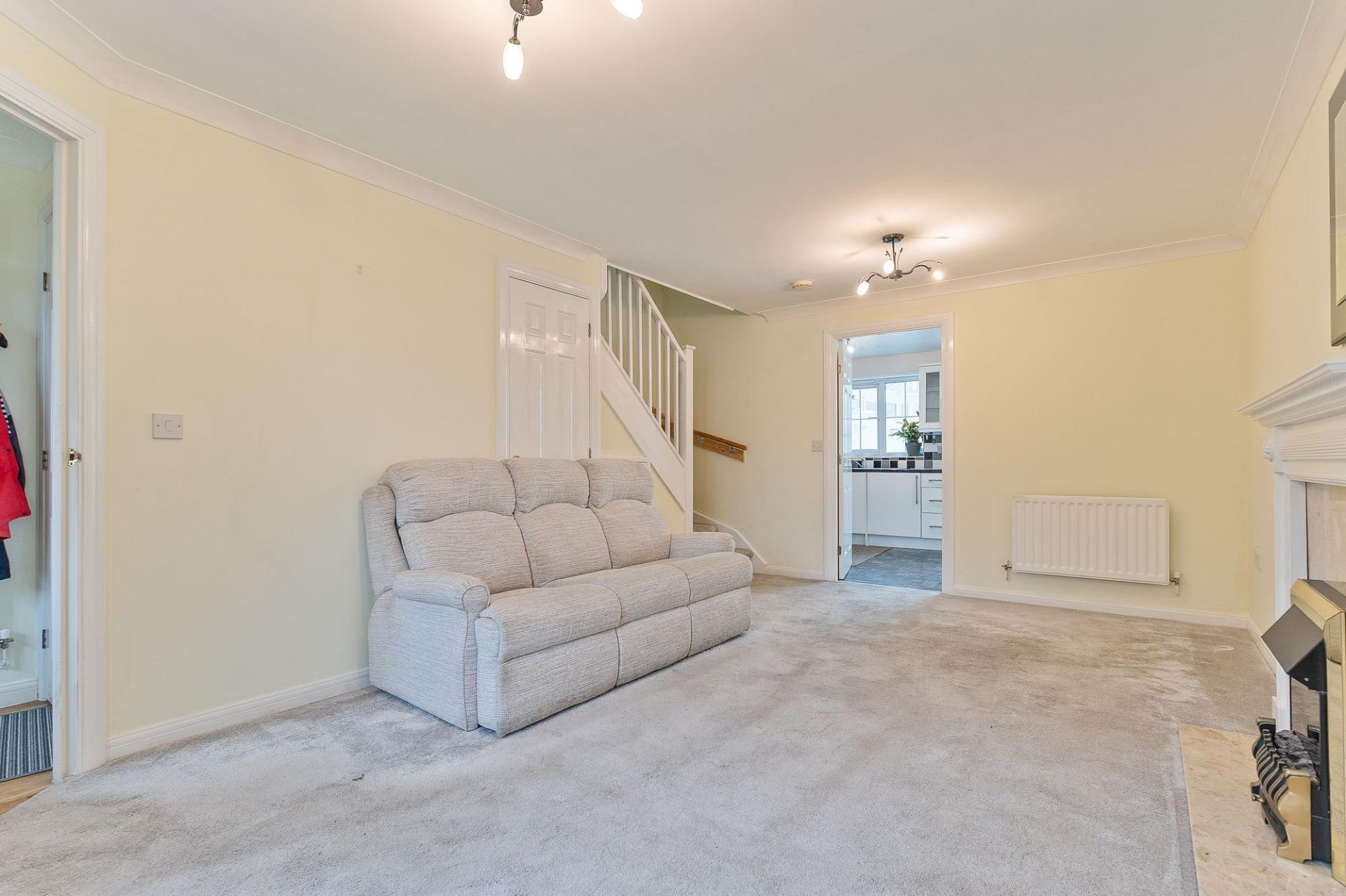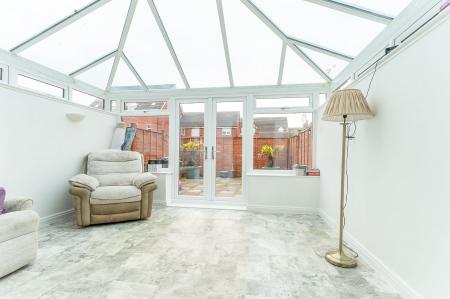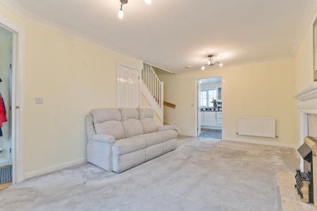 You enter the property through a welcoming entrance hall, which provides access to the cloakroom ahead, fitted with a WC and hand basin, as well as access into the main living area. The living room is bright and spacious, offering a comfortable setting for relaxation and family gatherings. The space features two built-in storage cupboards and stairs leading up to the first floor, ensuring both practicality and functionality. From the living room, you have access through to the kitchen/diner, a well-designed open-plan space that extends into the conservatory at the rear. The kitchen offers ample unit and worktop space, and the open layout provides plenty of room for a dining table and chairs, making it ideal for family meals and entertaining. The conservatory adds an extra dimension to the living space, filled with natural light and providing a versatile area that can be used as an additional seating or dining space, with direct access to the rear garden.